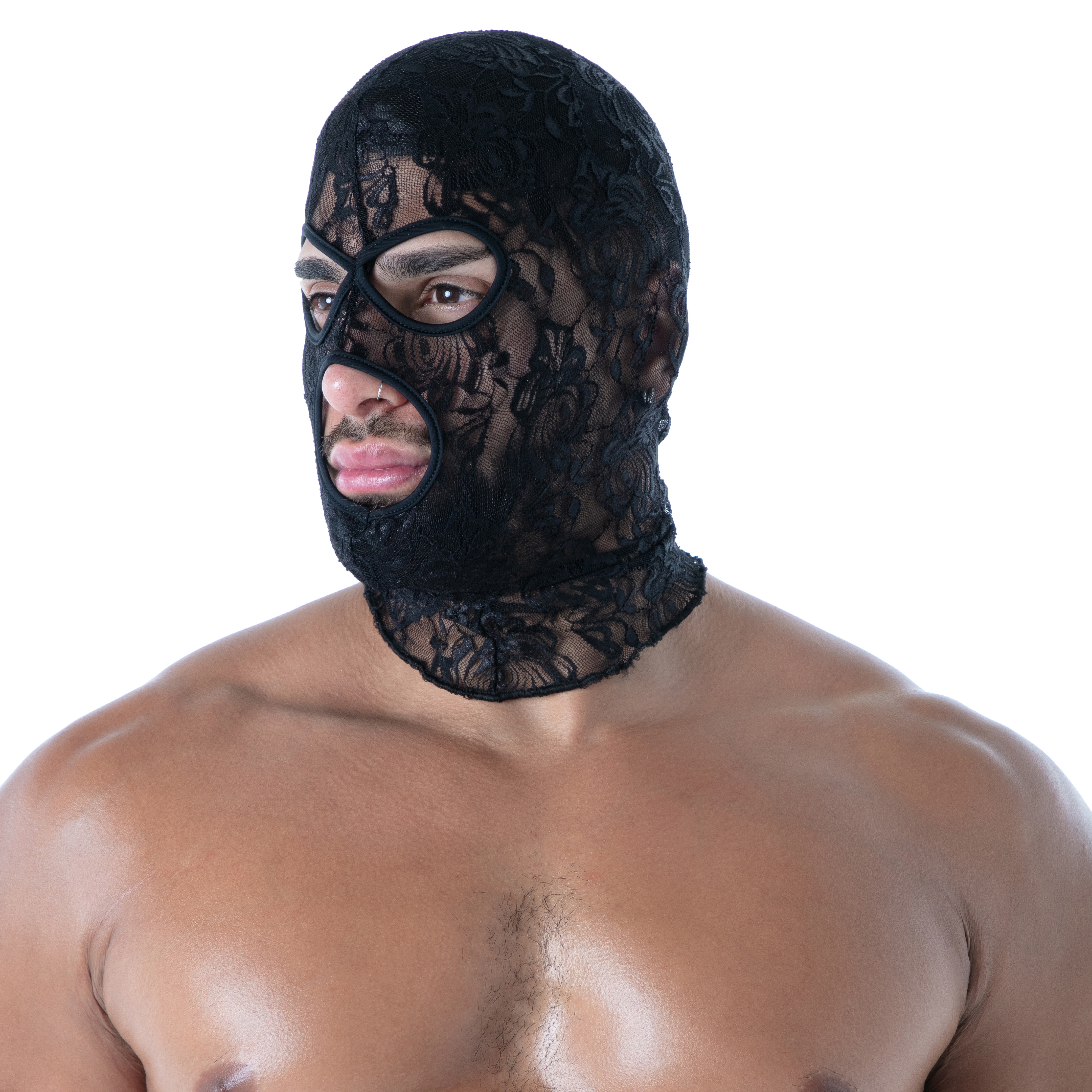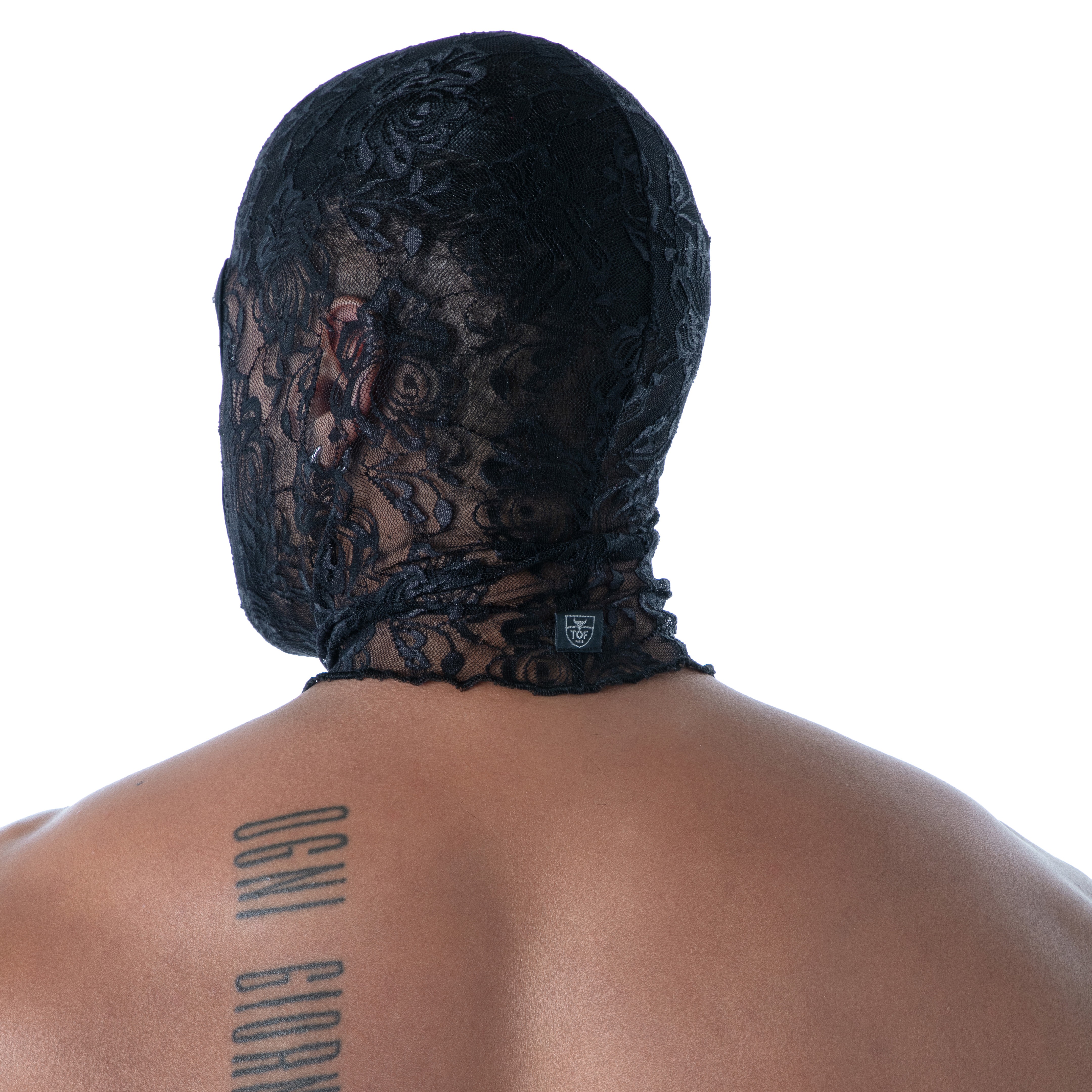 Découvrez la **Cagoule en Dentelle Fluide TOF PARIS - Noir**, l'accessoire incontournable pour tous les amateurs d'élégance fétichiste.