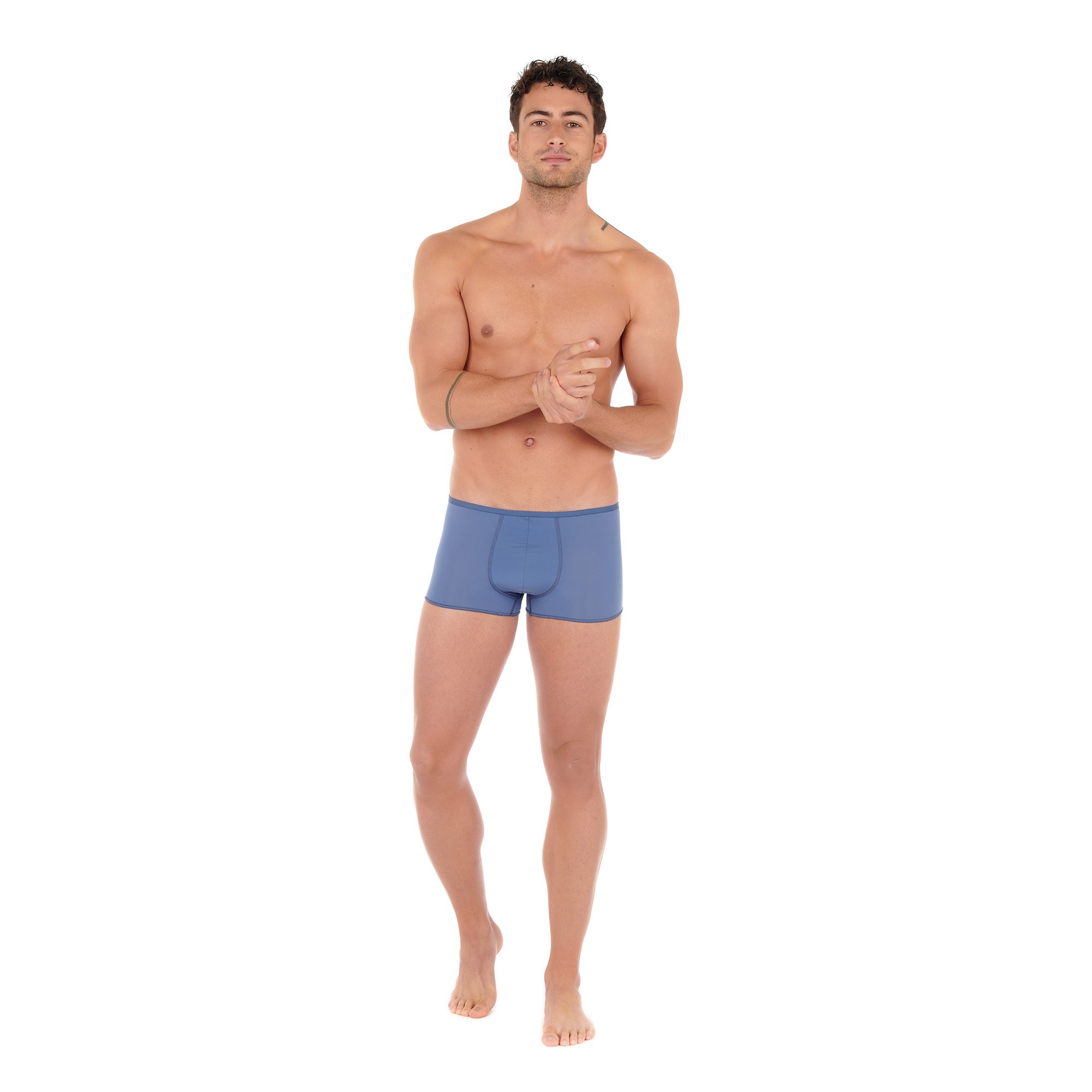 La matière microfibre en polyamide élasthanne prodigue à ce boxer court pour homme des qualités de résistance aux frottements, un séchage très rapide, un toucher particulièrement doux. Ce shorty pour homme allie la finesse de la matière à un maintien sans égal et bonne tenue sur le corps de son porteur.