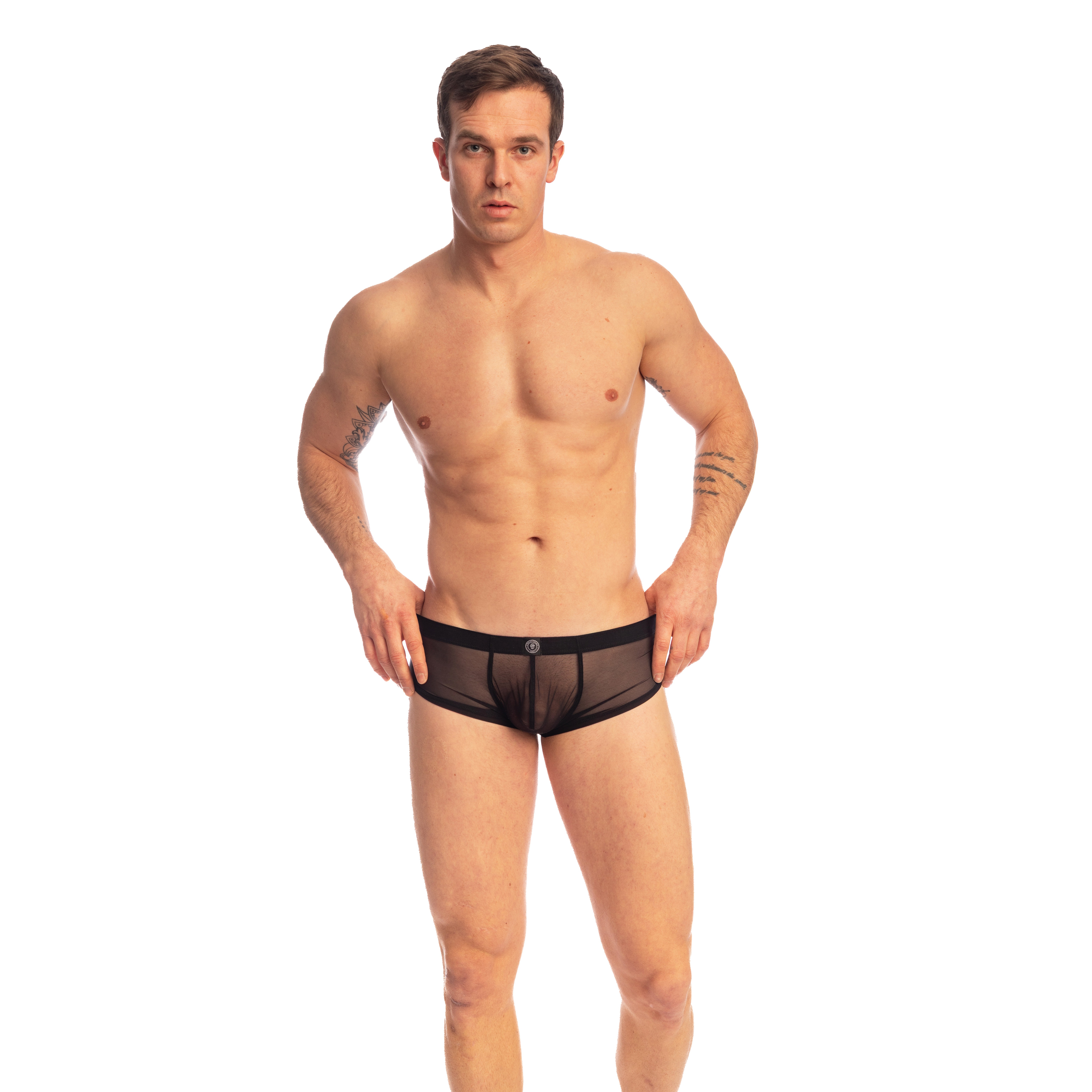 Découvrez le **Boxer Brésilien Beyond Invisible** de **L’Homme Invisible**, une pièce incontournable pour l'homme moderne qui désire allier confort et séduction. Ce boxer, appartenant à la catégorie des shorts et boxers, se distingue par son tulle noir transparent, un matériau délicat qui effleure la peau et sublime subtilement les courbes masculines. Conçu pour ceux qui osent afficher leur sensualité avec assurance, il offre un équilibre parfait entre élégance et désir.
