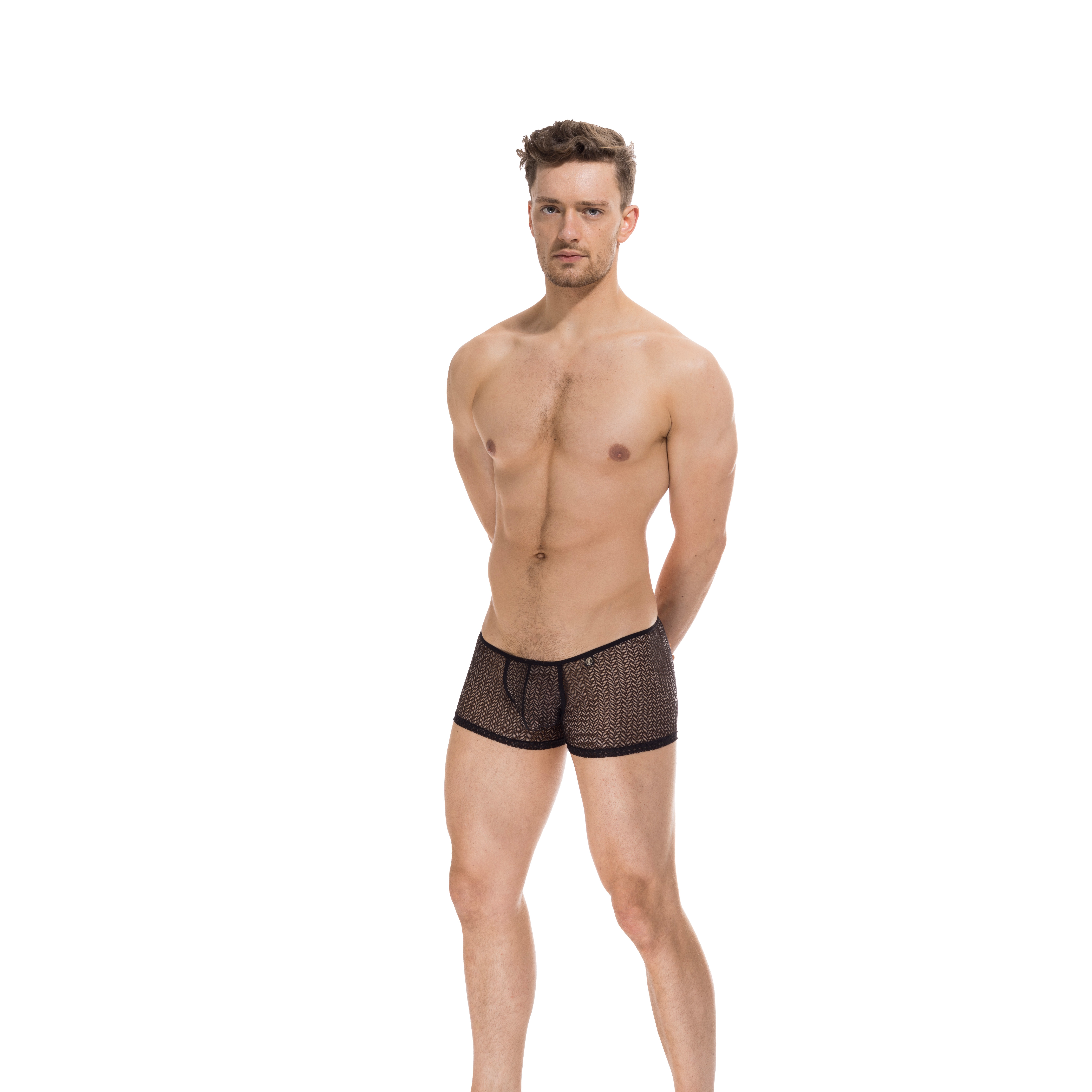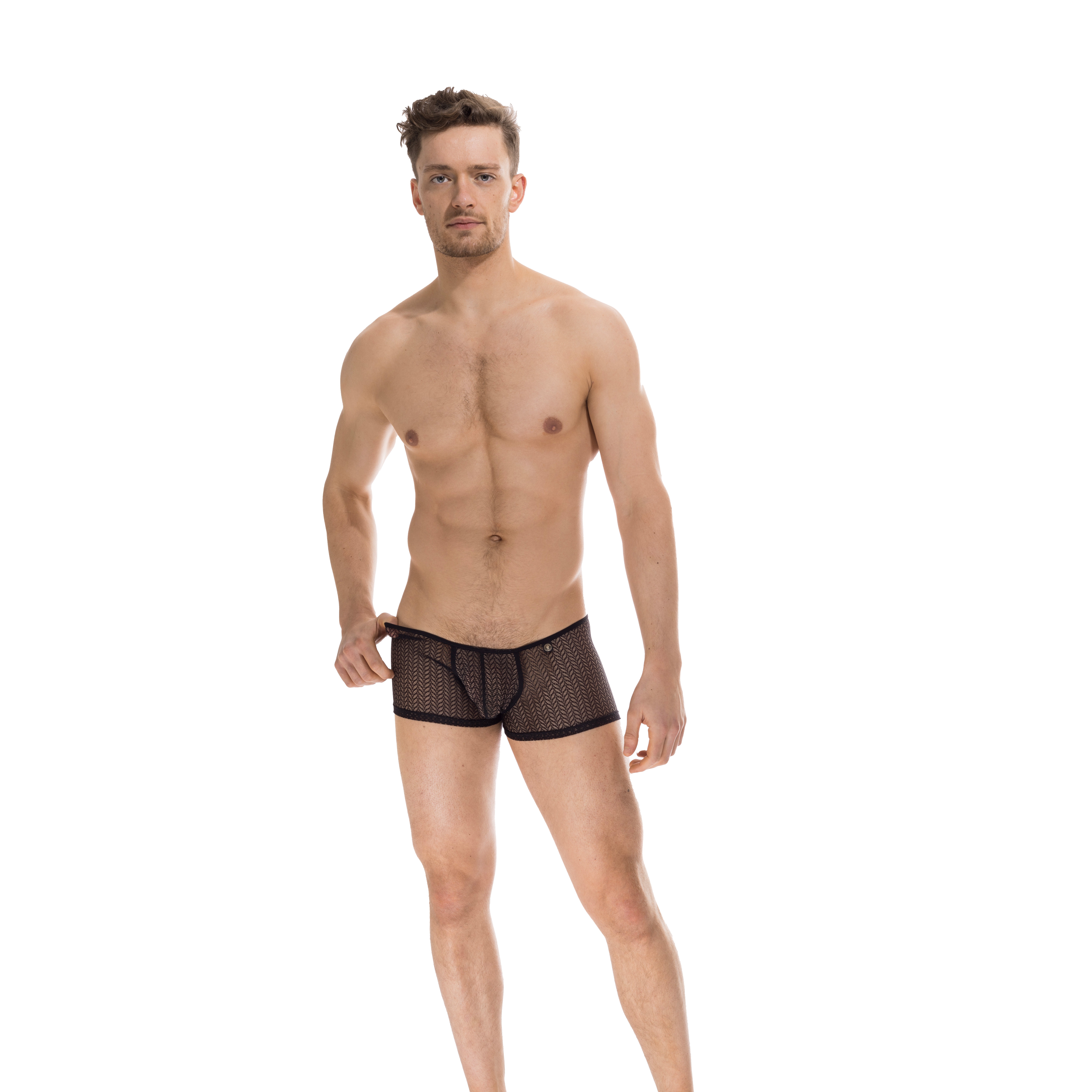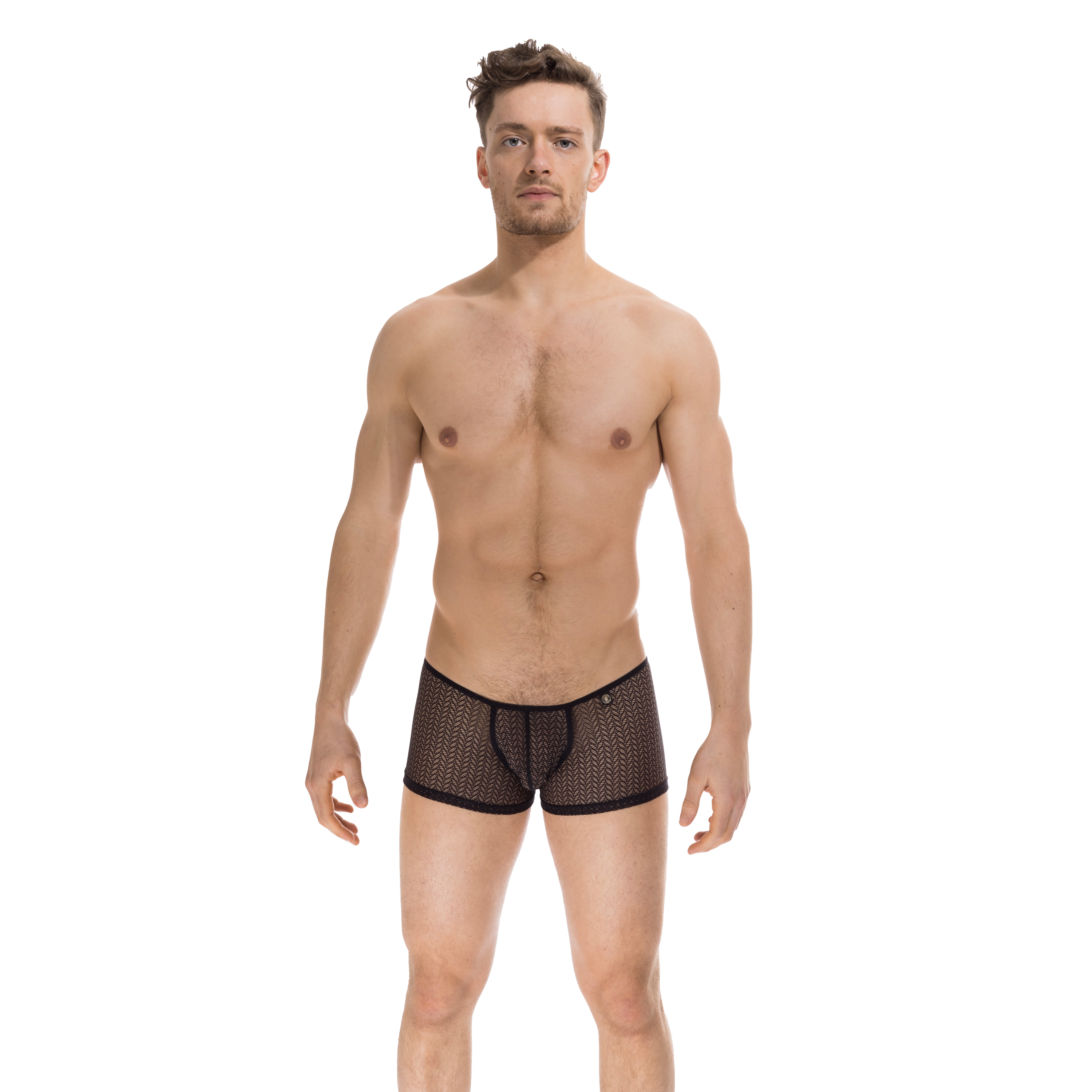Découvrez le **Viridios Noir - Boxer Invisible** de la marque **L'Homme Invisible**, un incontournable dans l'univers du sous-vêtement masculin. Ce boxer, conçu pour allier élégance et confort, se distingue par ses motifs chevron en dentelle délicate qui apportent une touche graphique tout en subtilité. Sa conception taille très basse met en valeur le bas de l’abdomen, offrant ainsi un look sexy qui se marie parfaitement avec un style audacieux.