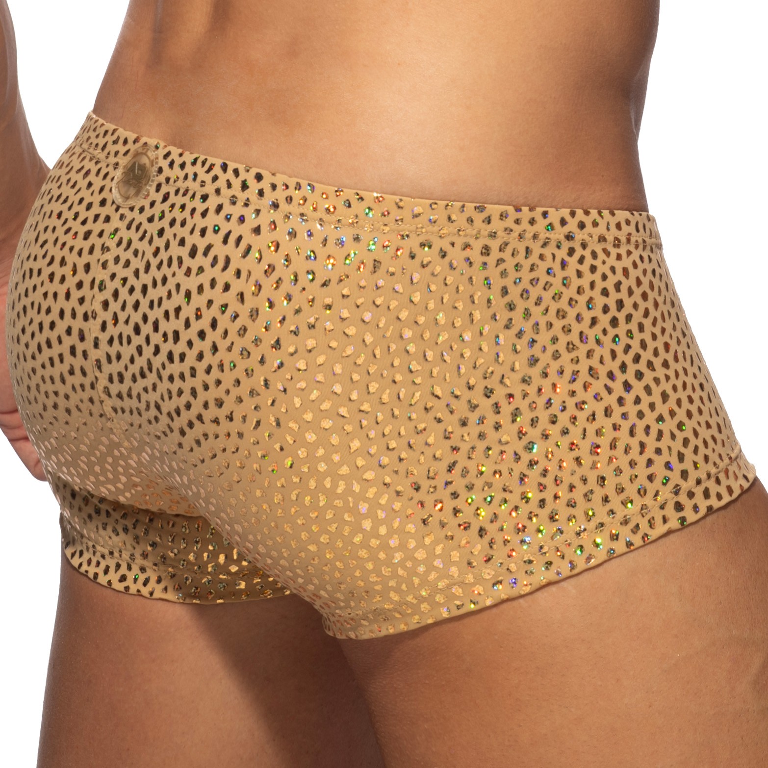Conçu pour l'homme moderne, le Trunk Gold Stones ne se contente pas d'être un simple sous-vêtement. Il incarne l'esprit de fête avec son effet laminé scintillant et doré, qui attire tous les regards tout en offrant une sensation luxueuse au toucher. Vous ressentirez une agréable caresse sur votre peau, grâce à son matériau légèrement extensible qui épouse parfaitement vos formes, tout en garantissant une aisance incomparable dans le mouvement.