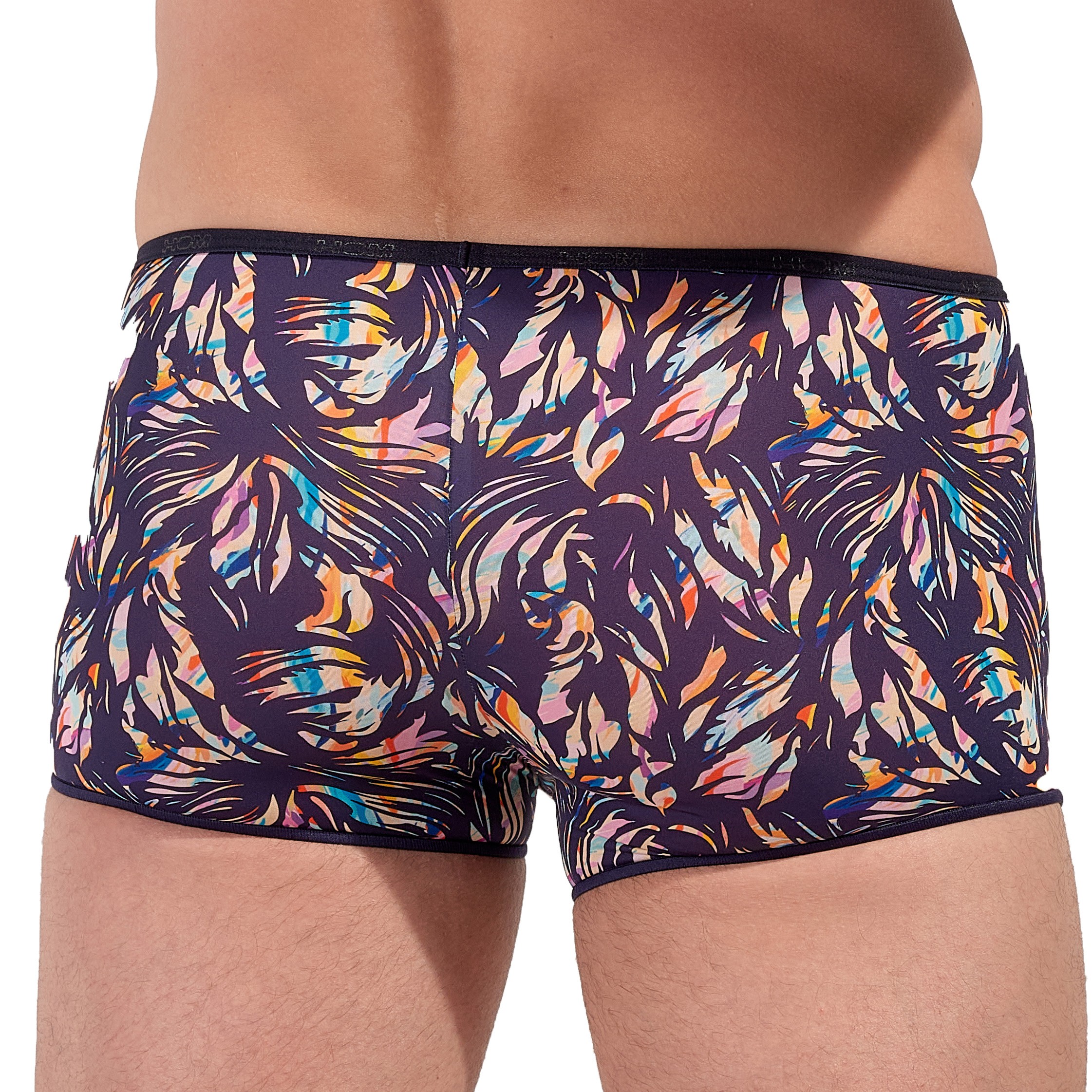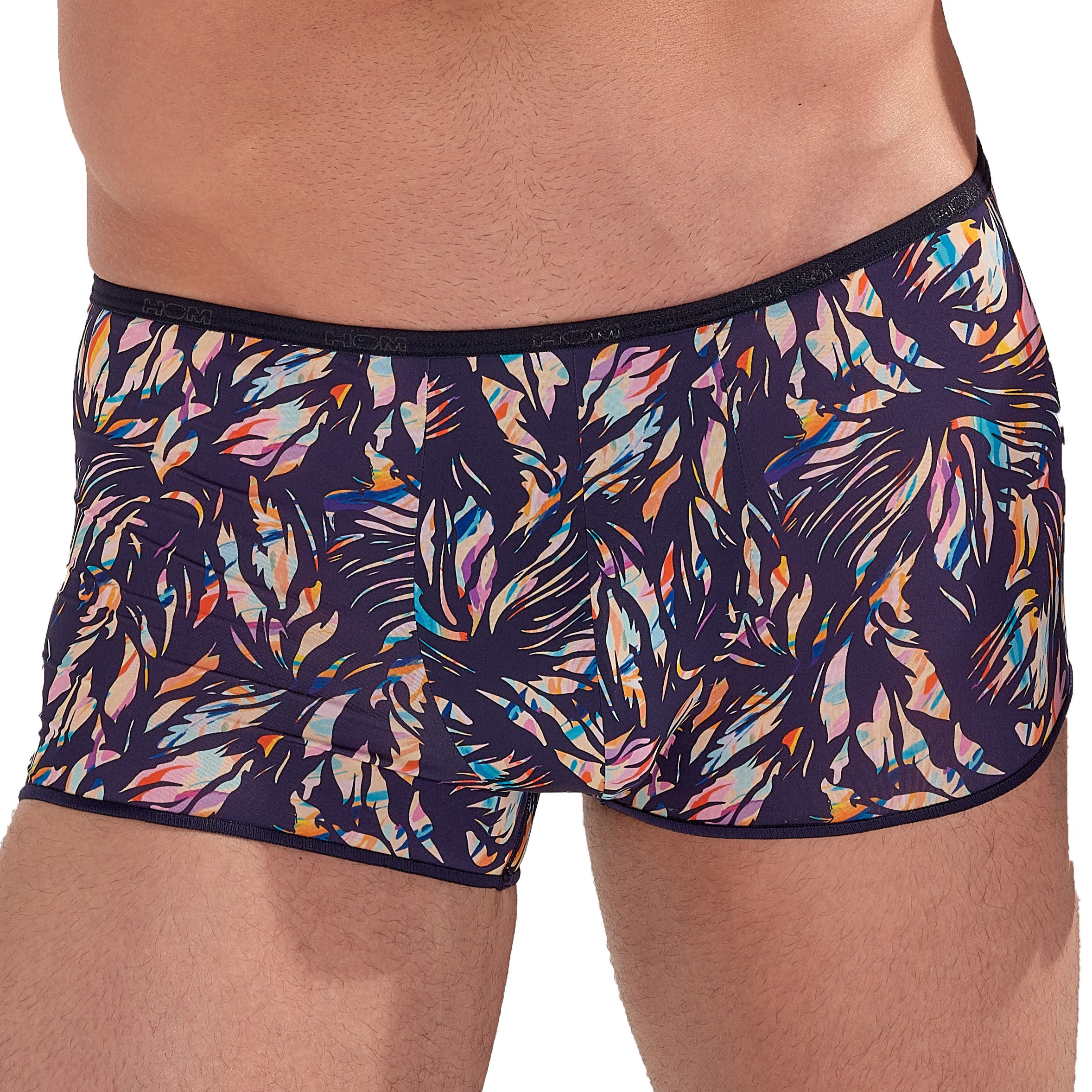La coupe courte du HOM Viscaya épouse parfaitement les lignes du corps sans comprimer, mettant en valeur la silhouette masculine tout en garantissant un confort optimal. Sa ceinture élastique très fine, subtilement ornée du logo HOM, ajoute une touche de raffinement sans marquer la taille, un détail qui fera toute la différence pour ceux qui sont attentifs au style et au bien-être.