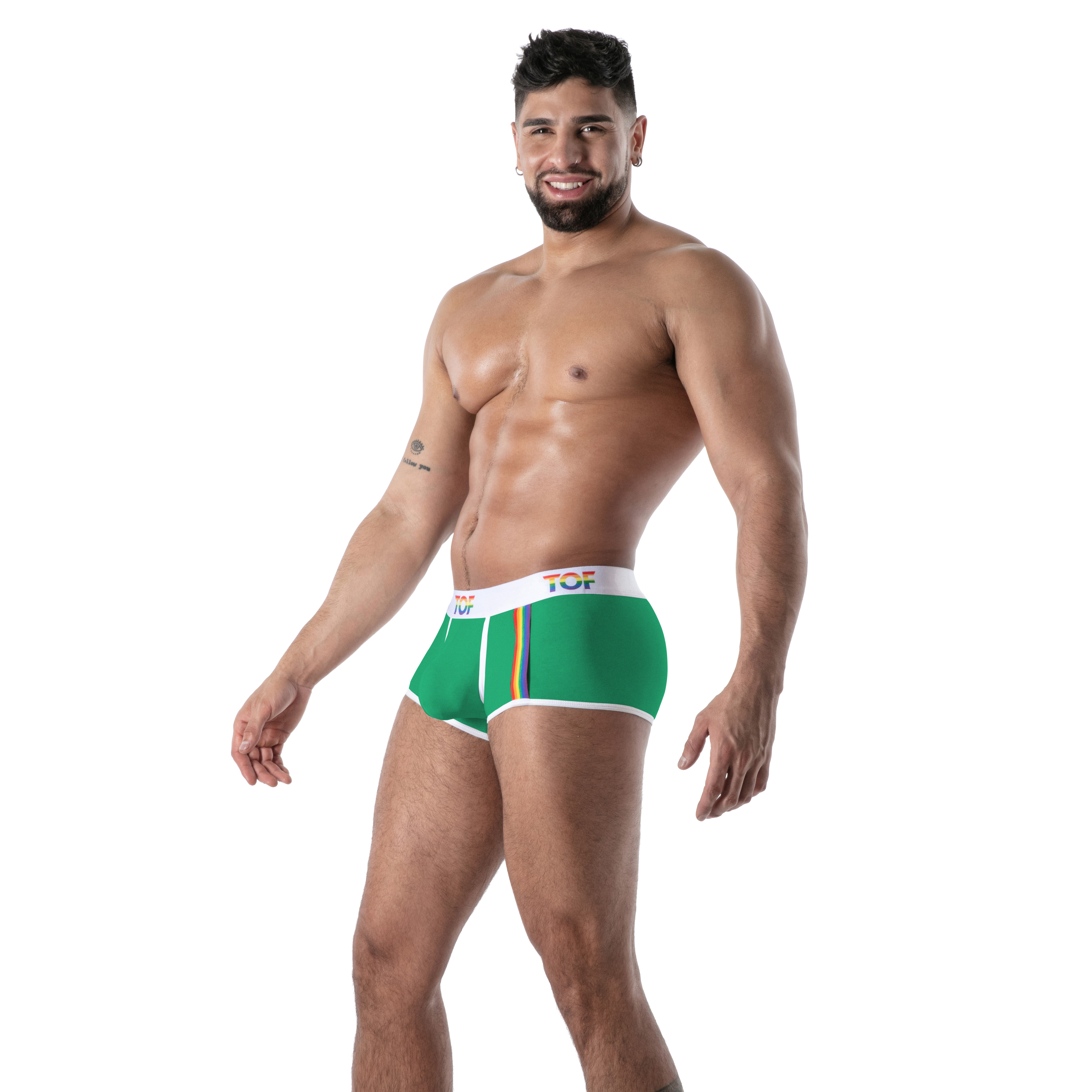 « Le boxer pride joyful incarne parfaitement l’ADN TOF Paris : audace, sensualité et excellence de fabrication. Sa coupe est idéale pour mettre en valeur la silhouette, et son design arc-en-ciel ajoute une dimension expressive unique. C’est un boxer qui mélange avec brio style et fonctionnalité, un indispensable pour tous ceux qui recherchent un sous-vêtement haut de gamme, durable, confortable et franchement sexy. »