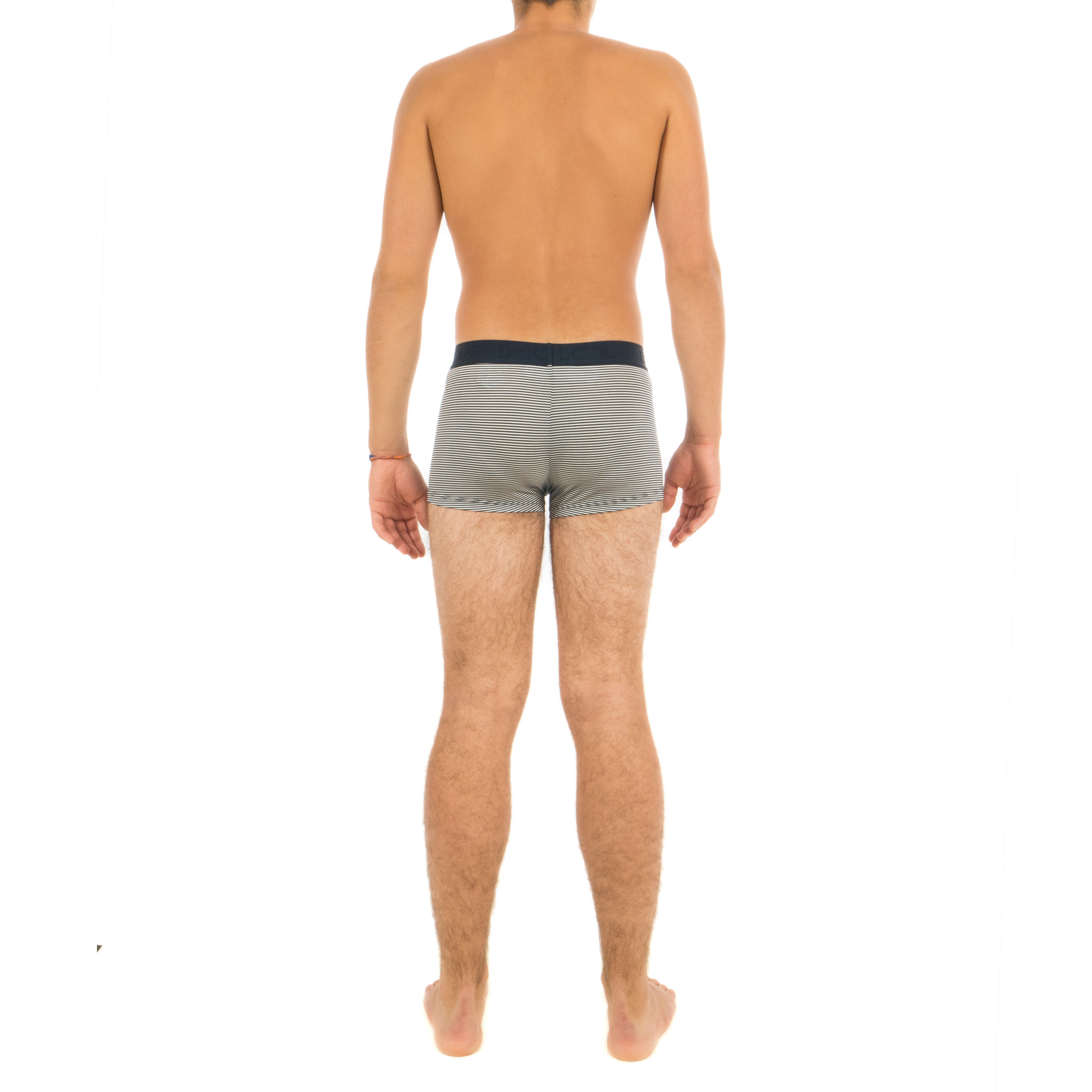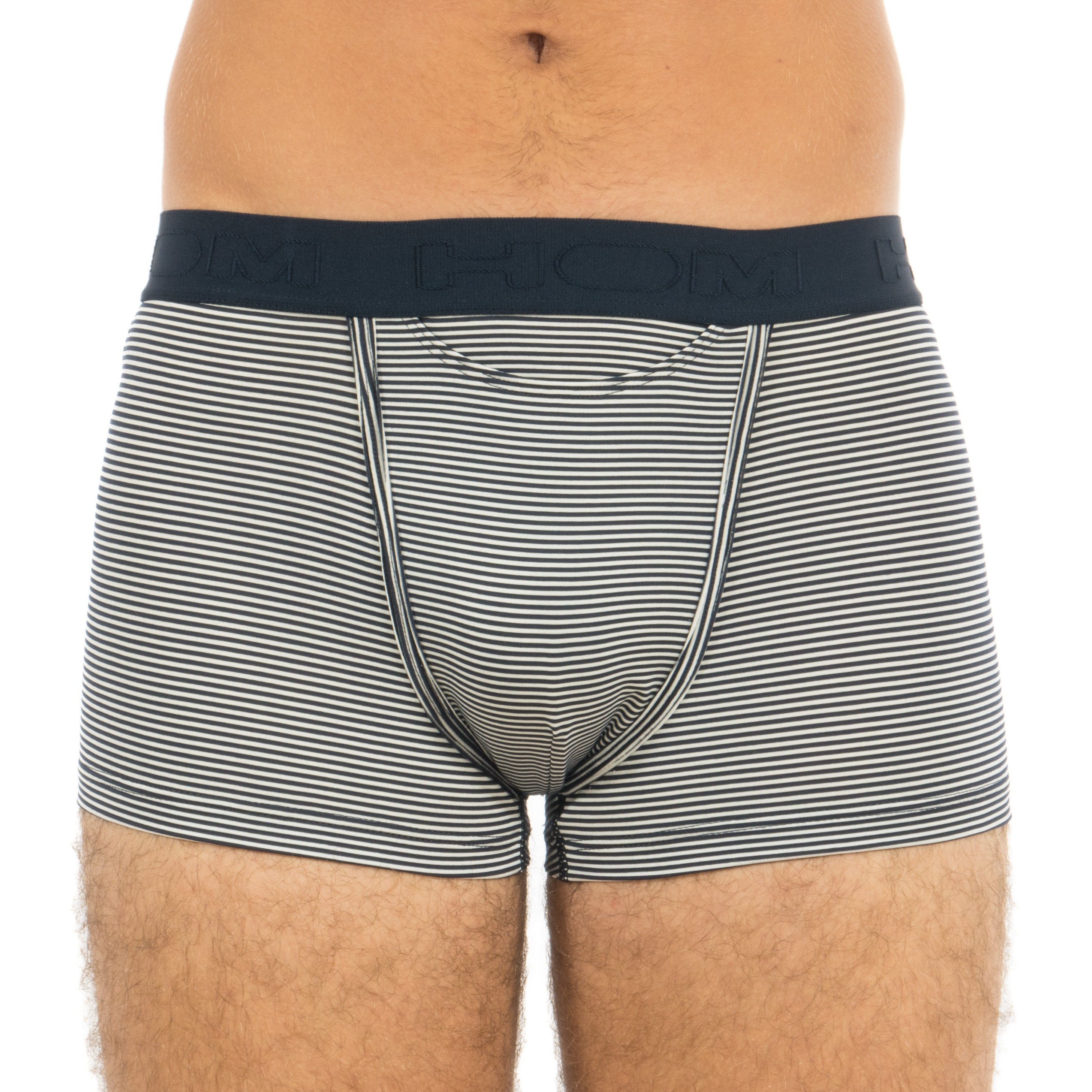 La rayure de ce boxer est tricotée en alternant deux matières en blanc et bleu marine, ce qui créée un toucher à la fois doux et reliefé. La matière en majorité modal confère des propriétés absorbantes optimales, résiste fortement au rétrécissement et aux frottements. Le polyester rend de plus ce boxer HO1 infroissable et résistant au peluchage.