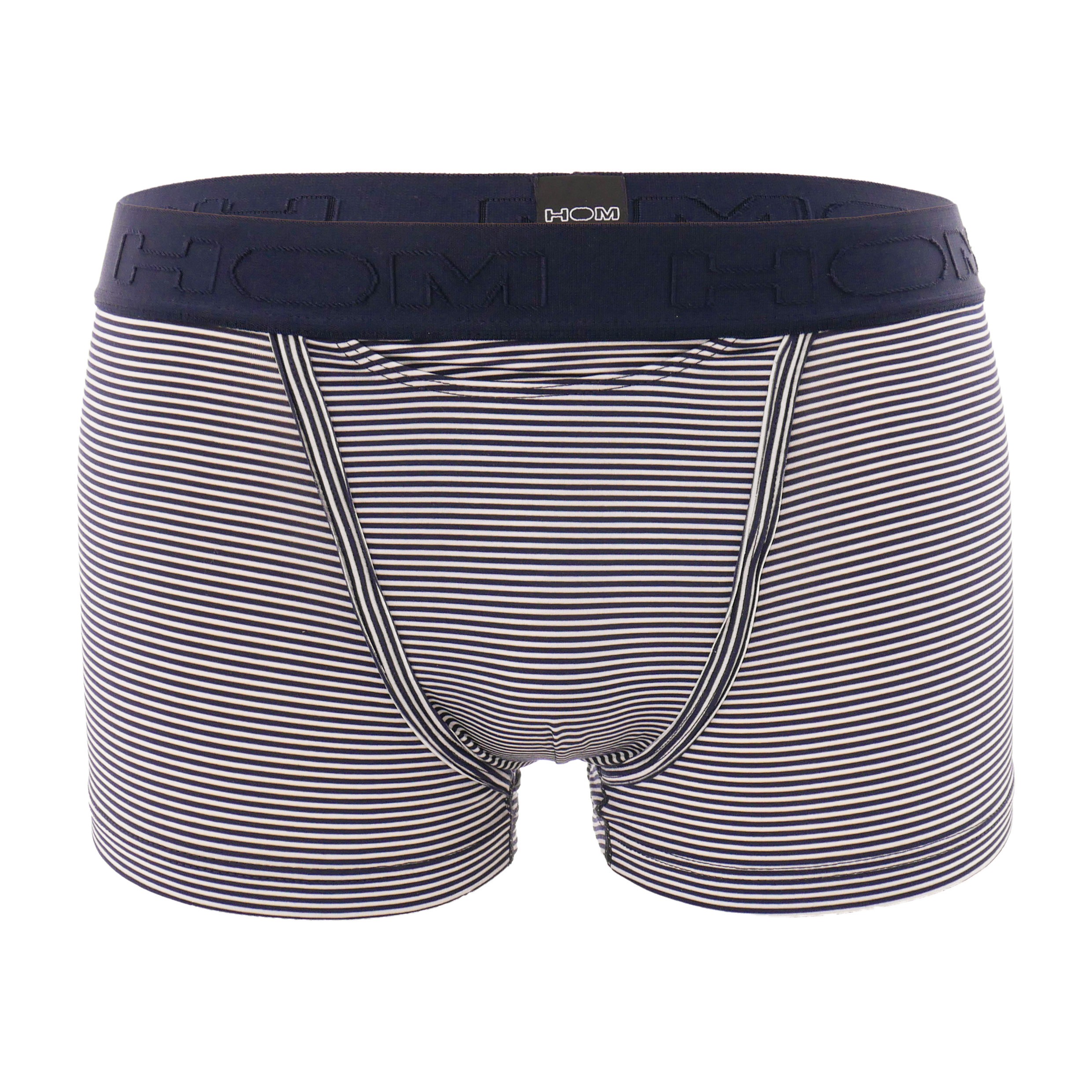 HOM réinterprète la marinière avec la ligne SIMON. Ce boxer HO1 HOM est un boxer en modal polyester bénéficiant de l'Ouverture Horizontale n°1, propre à la marque, aussi pratique pour les gauchers que les droitiers. Muni d'un suspensoir à la coque souple avant, ce boxer pour homme vous assure confort et soutien en toutes circonstances.