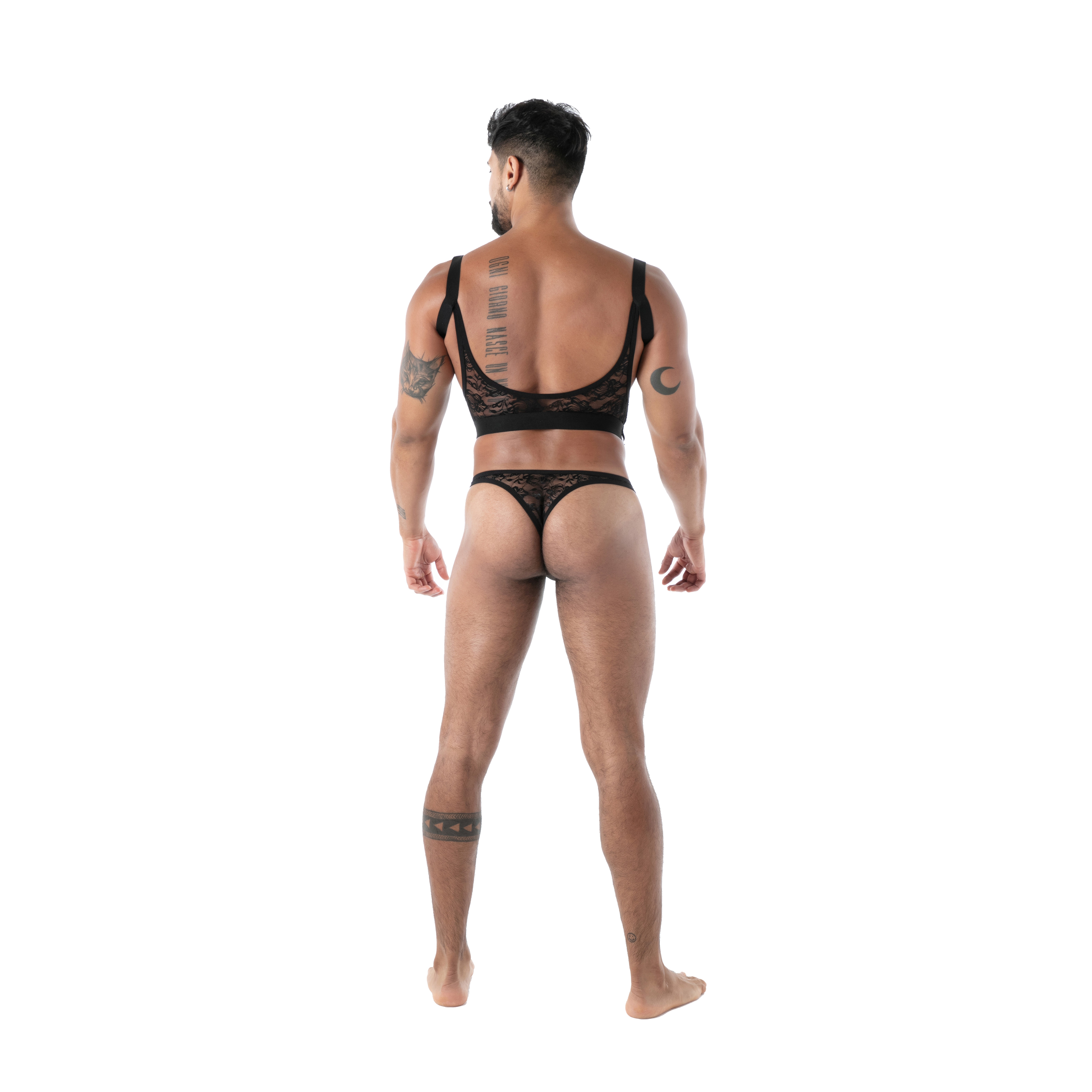 Diese sorgfältig in Paris gefertigte Herren-Spitzenunterwäsche spiegelt die hohen Standards der Marke TOF Paris wider. Jedes Stück wird von unseren spezialisierten Schneidern von Hand zugeschnitten und zusammengefügt. Die dehnbare Spitze schmiegt sich an die Kurve, während die Gummibänder für eine perfekte Passform sorgen, ohne die Haut zu beschädigen. Dieses Produkt ist eine Fortsetzung unserer Kreationen wie z.B. der Inky Waist Apron.