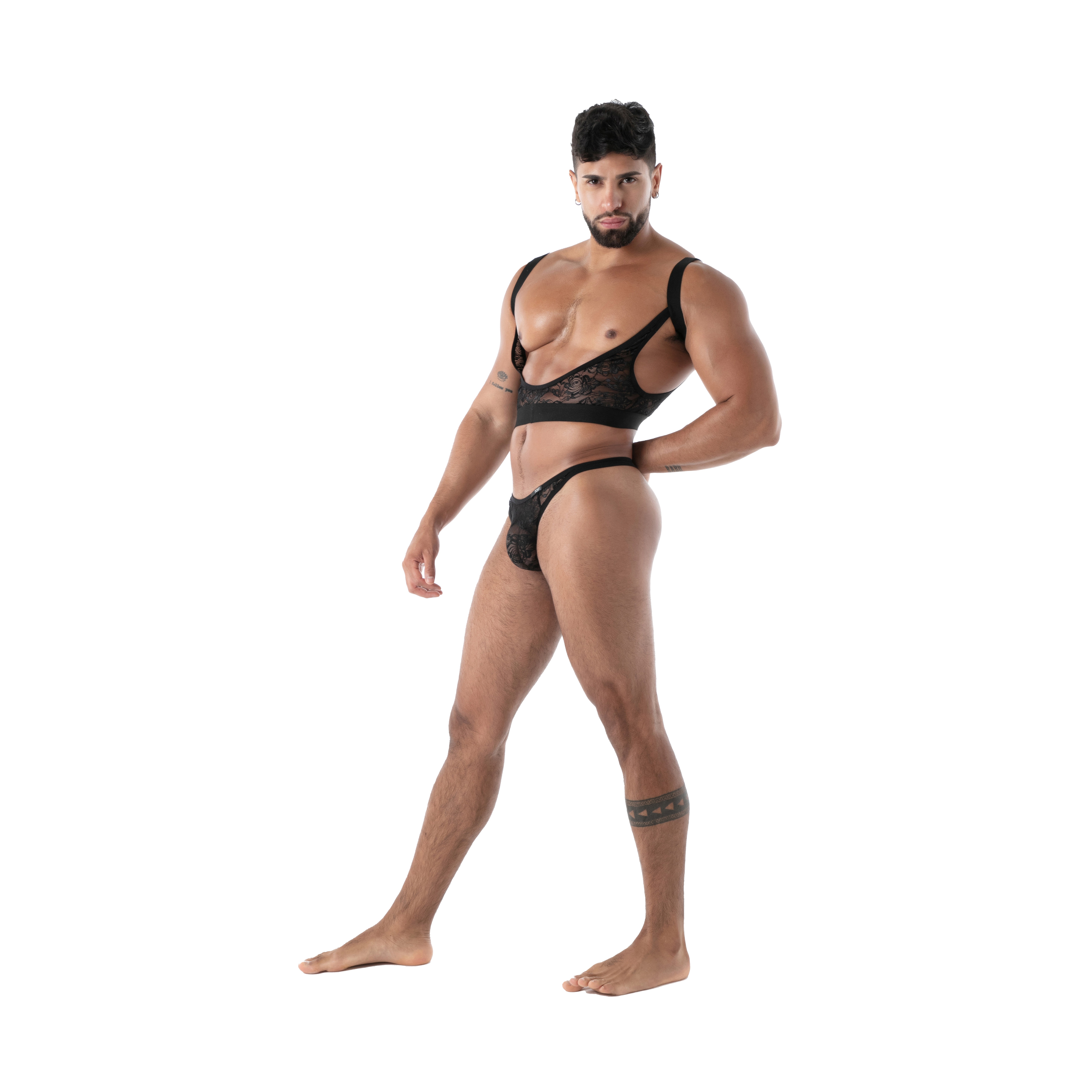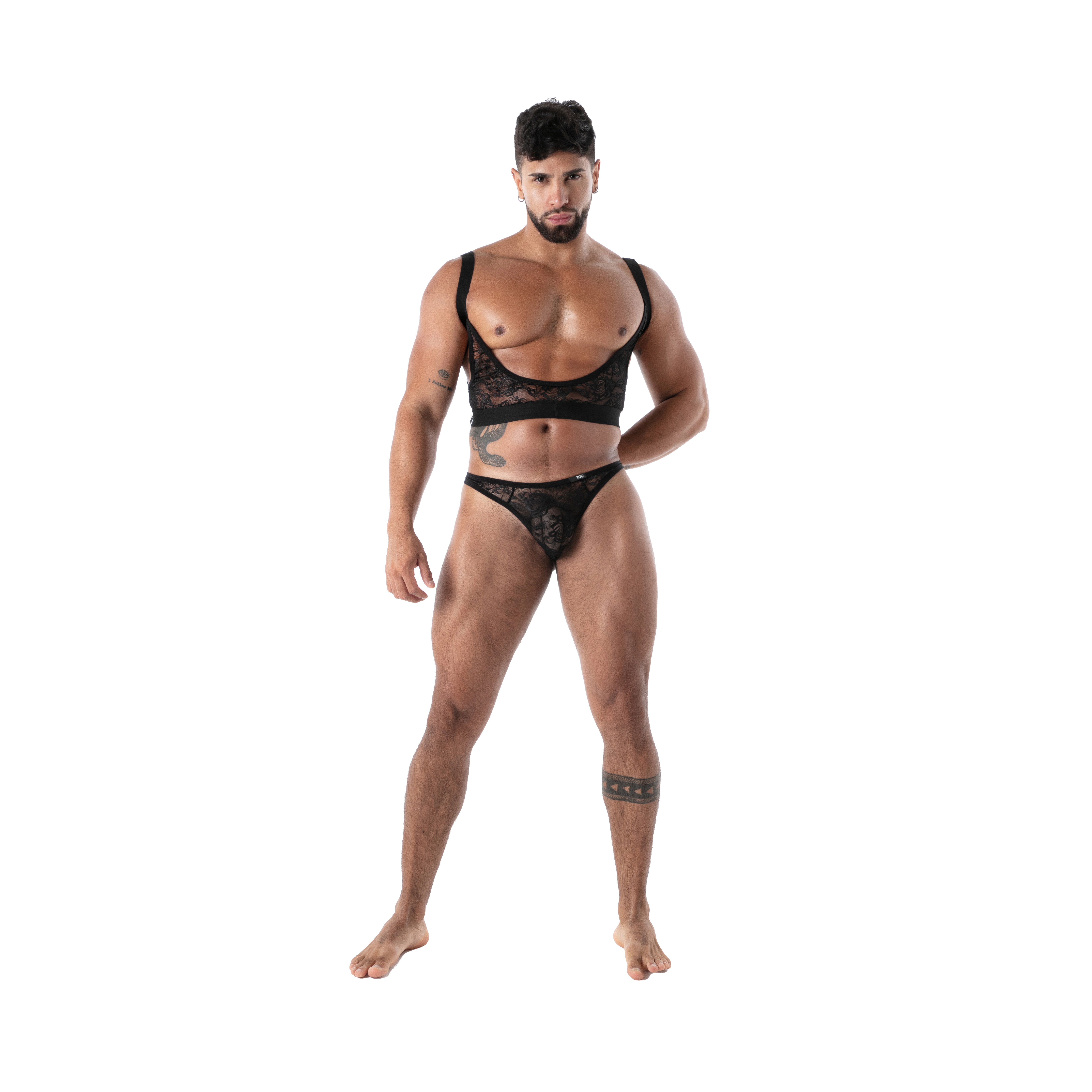 Entdecken Sie die perfekte Kombination aus maskuliner Verführung und provokativem Stil mit unserem Spitzen-Strumpfgürtel für Herren. Dieses ikonische Modell von TOF Paris passt perfekt zu unserer Auswahl an sexy Slips und Boxershorts für Männer, unseren sexy Herren-Strings oder sogar Herrenröcken für einen kompletten und lässigen Look.
