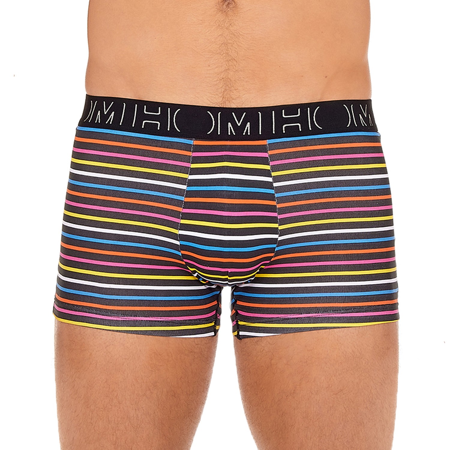 Die RON#2 Herren-Boxershorts sind lang geschnittene Boxershorts aus natürlicher Baumwolle. In einfarbigem Schwarz oder Schwarz mit feinen elektrischen, orangen, rosa, gelben und weißen Streifen bilden diese Unterwäsche ein komplementäres Duo, das sehr geschätzt wird: Die einfarbige lange Boxershorts und die mehrfarbigen Boxershorts verbinden absoluten Komfort mit einem ebenso erlesenen wie positiven Design!