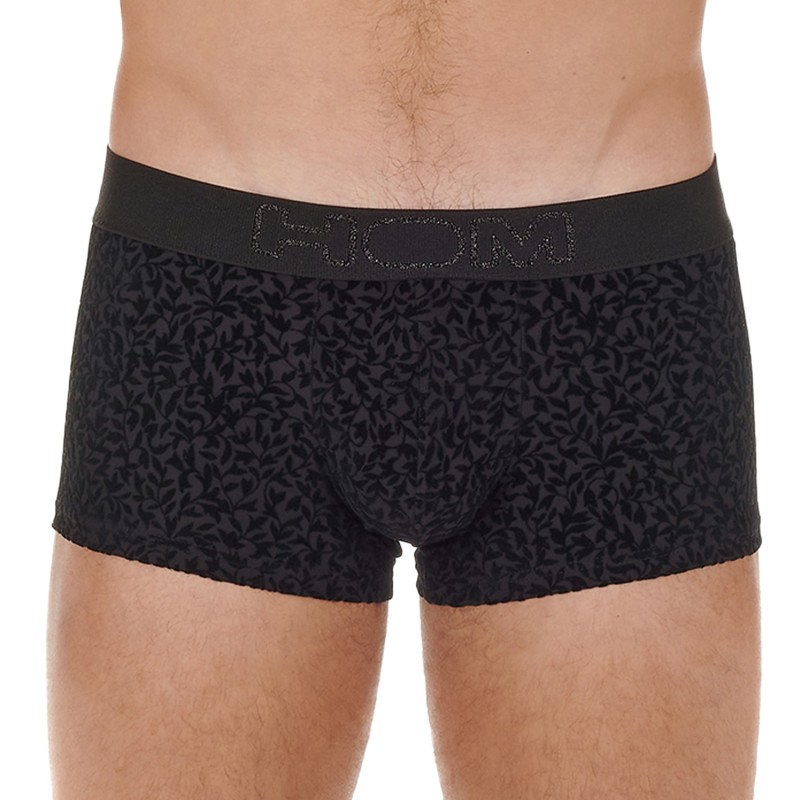 Der Schnitt dieser Boxershorts ist kurz am Oberschenkel und endet unter der Gesäßlinie, während sie bei einer Standard-Boxershorts viel tiefer am Oberschenkel liegt, auch eine niedrigere Taille hat und so der Herrenunterwäsche einen schönen Shorty-Look verleiht. Sein elastischer Bund ist aus schwarzer Mikrofaser gefertigt und hat das HOM-Logo auf der Vorderseite der Unterwäsche, das an der Innenseite weich ist und nicht zusammendrückt.