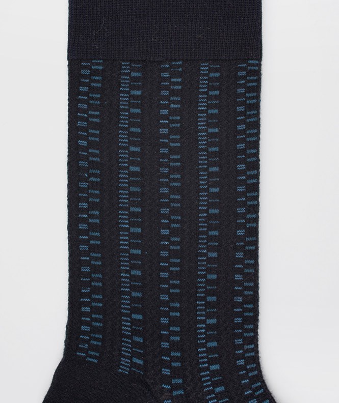 Entdecken Sie die gesamten geometrisch gestrickten Herrensocken in Blau, die Labonal seit 1924 in seiner elsässischen Fabrik in Frankreich herstellt.