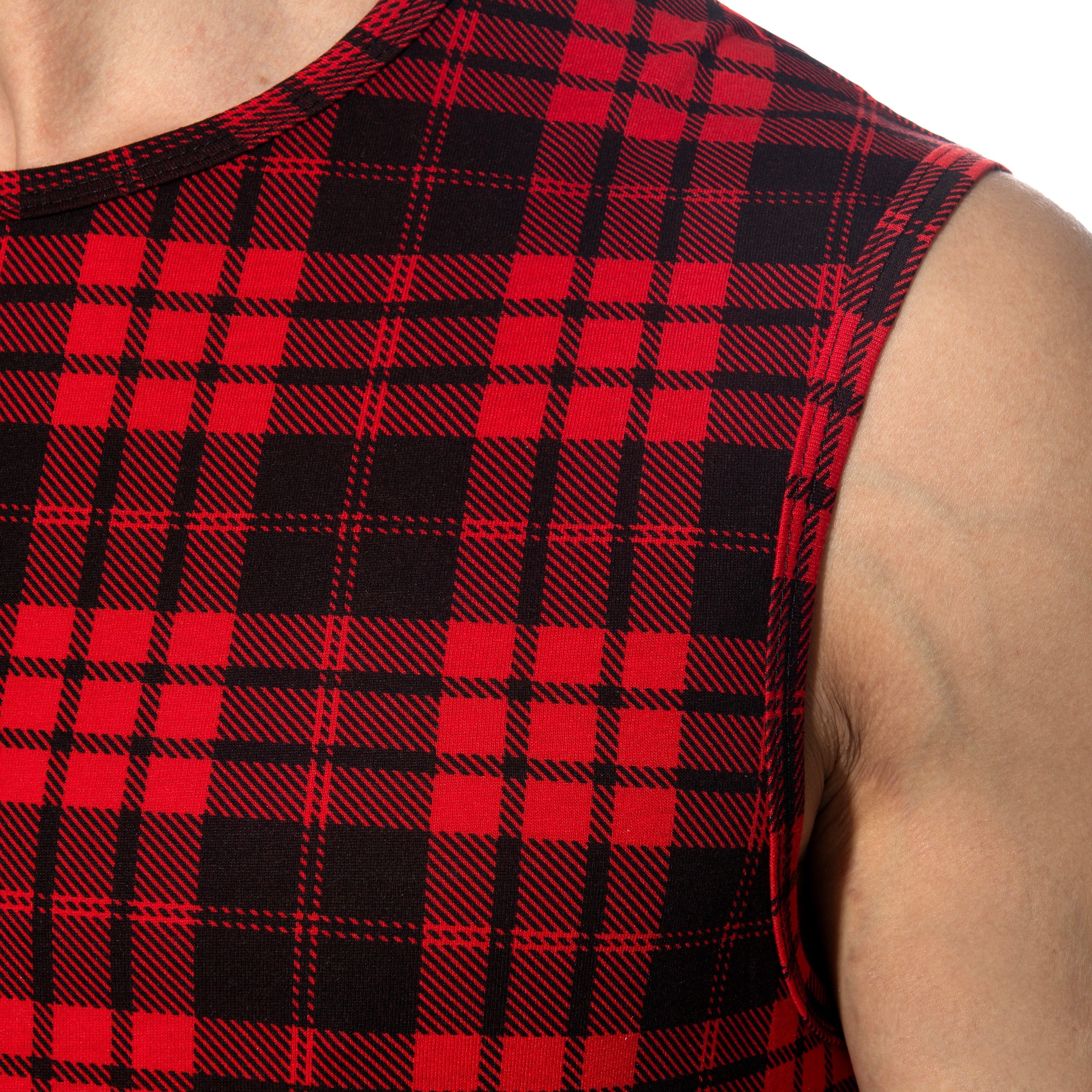 Zeig diese Dudelsäcke. Dieser Panzer ermöglicht es Ihnen, Ihre Waffen in dem sexiesten Tartanstoff der Stadt zu präsentieren. Gefertigt aus weichem und bequemem Dehnmaterial für eine perfekte Körperpassform. Das Design des breitschulterigen Tanktops hebt deine Männlichkeit hervor, als wäre es eine Tartandose. Auf der Rückseite, AD Fetish Logo aus passendem Silikon.