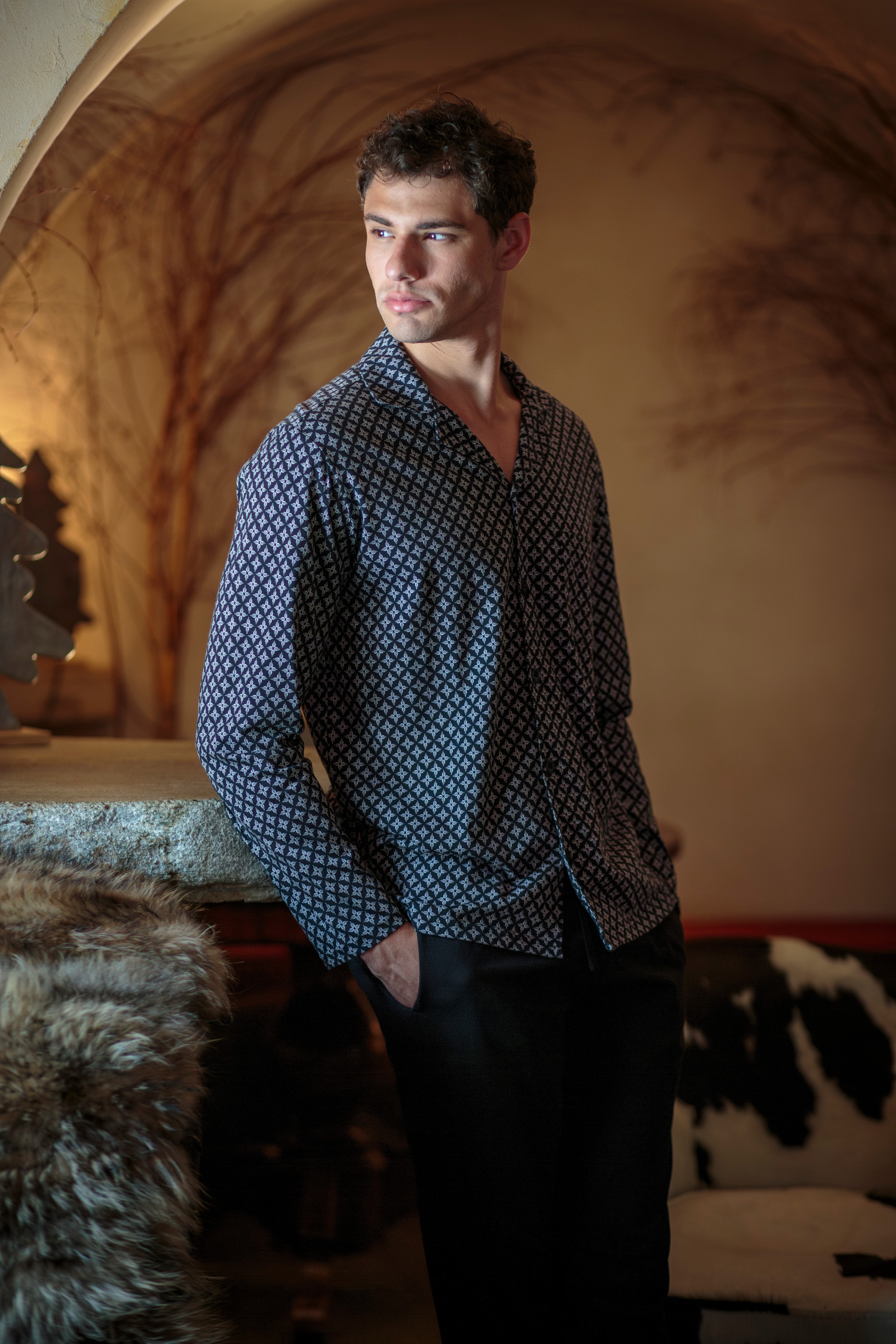 Der lange Pyjama VINCE ist ein Herren-Pyjama aus 100 % Baumwolle. Er verleiht jedem Moment einen Hauch von Eleganz. Sein geometrischer Mesh-Druck von zweifarbigen Blumen zeigt einen ziemlich raffinierten Look.