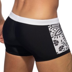 Descalzo, pero con vela. Los dos pueden ir de la mano, como cuando tu helicóptero te deja en la playa privada... Un bañador muy sofisticado para la "superestrella que va de incógnito" que eres. Magníficos trajes de baño en blanco y negro de alta gama de la casa de moda, rebosantes de rosado fresco y estilo. Impresionante diseño abstracto lateral en tejido súper elástico. Dos cordones de la marca en la parte delantera para un ajuste definitivo, confeccionados con ojales metálicos y lazos metálicos.