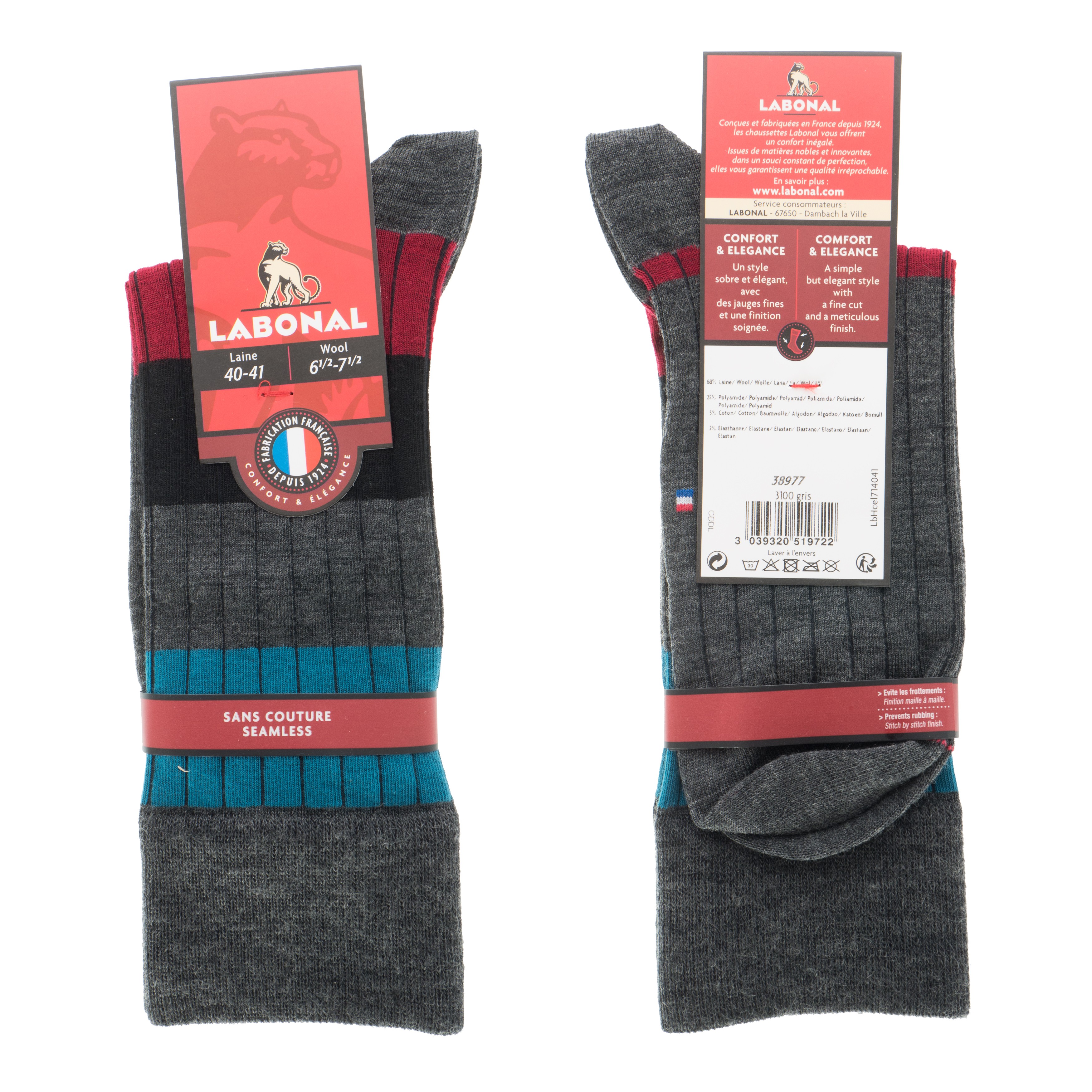 MI-CHAUSSETTES Rayas grandes y costillas de lana - Seamless - Gris