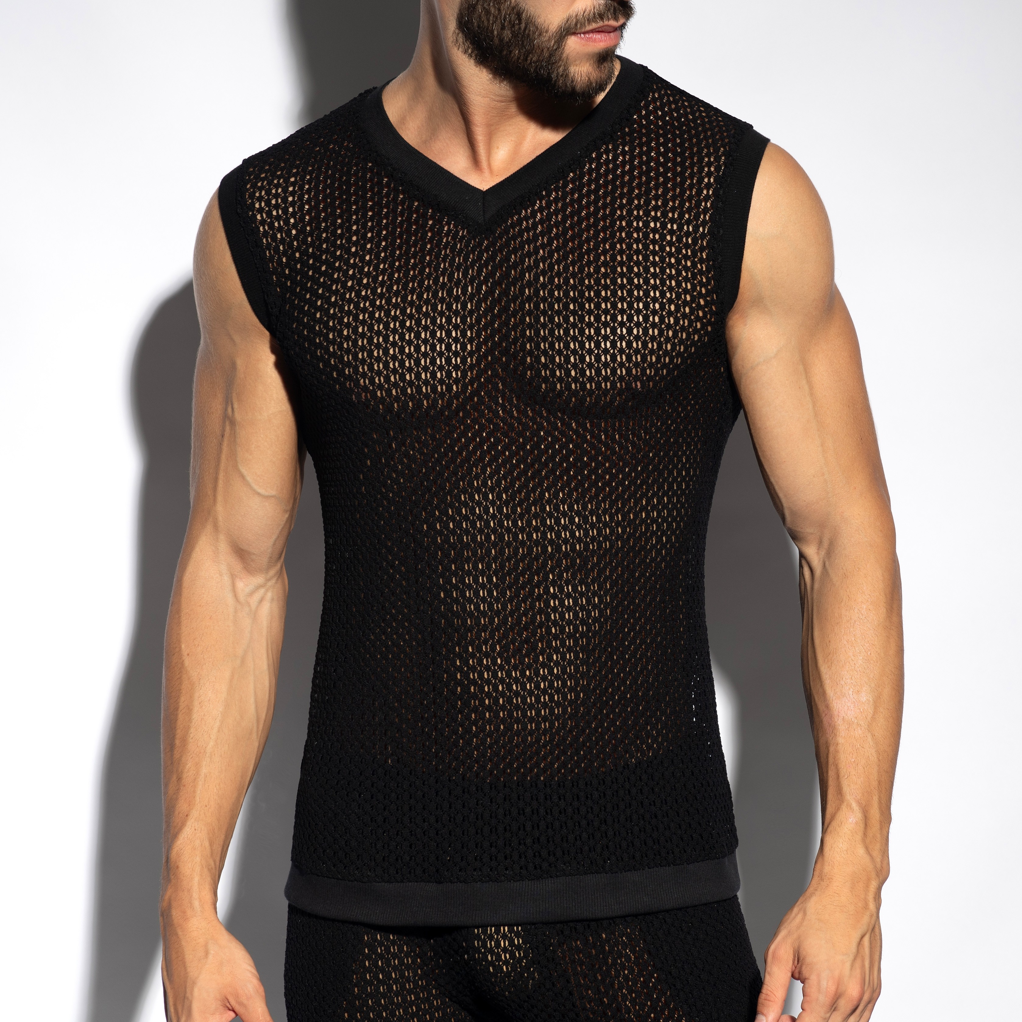 Camiseta sin mangas con cuello en V - Negro