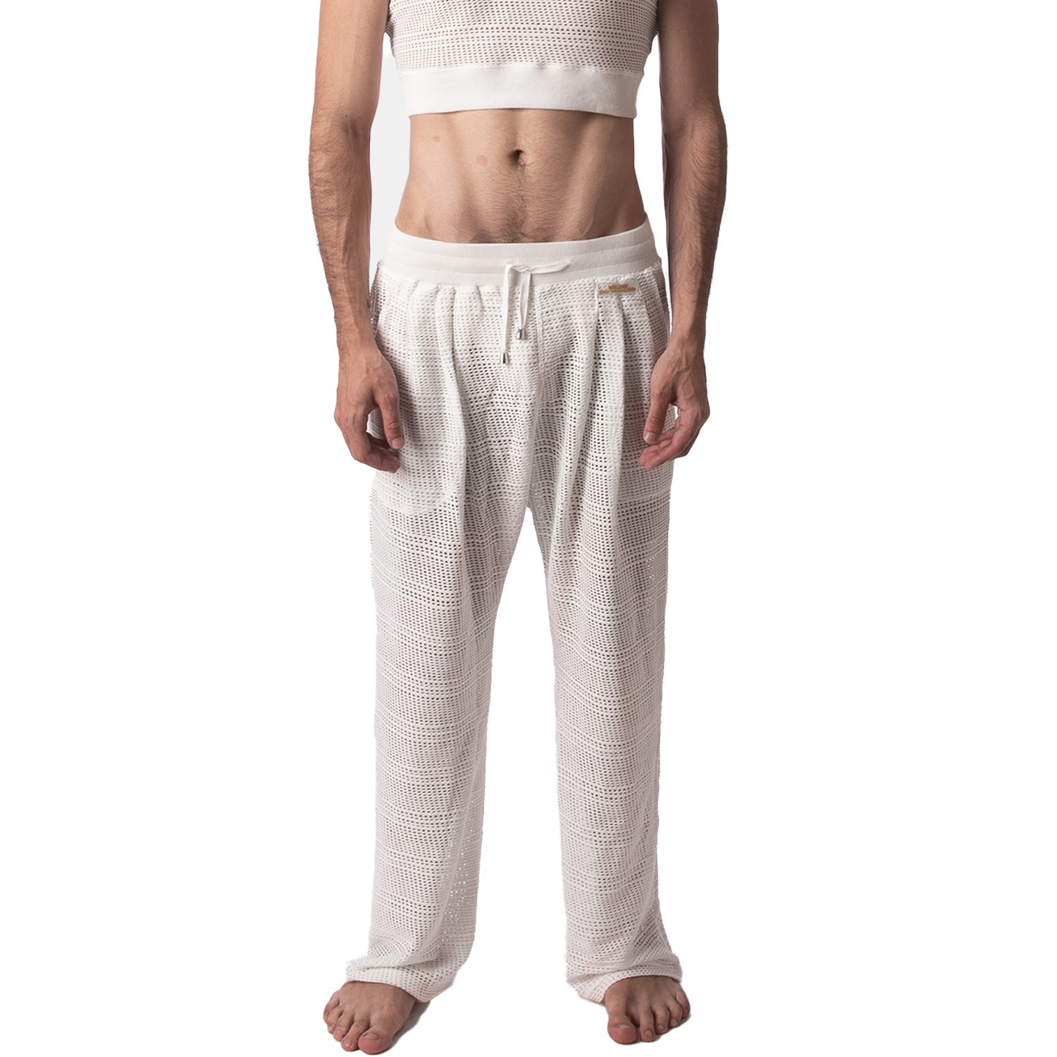 Pantalones en tejido calado, transparentes para un efecto sensual garantizado.