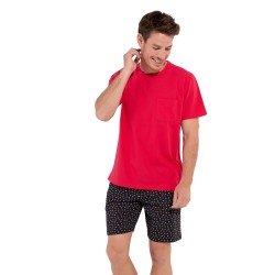 Date un capricho con la comodidad del pijama Charli. Con sus estampados de lunares multicolores, estos bonitos pijamas cortos para hombre en 2 piezas (bermudas y camiseta de manga corta) son imprescindibles para el verano. Está confeccionado en algodón, un material suave, transpirable y resistente, perfectamente adaptado a tus noches de verano.