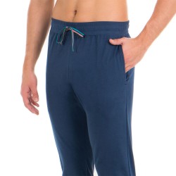 La parte superior de este conjunto de loungewear consiste en un cuello de camiseta larga collar con una pasta de 3 botones de abotonamiento. Sobrio y atemporal, el modelo se realza con una tira limpia y un cordón de color.