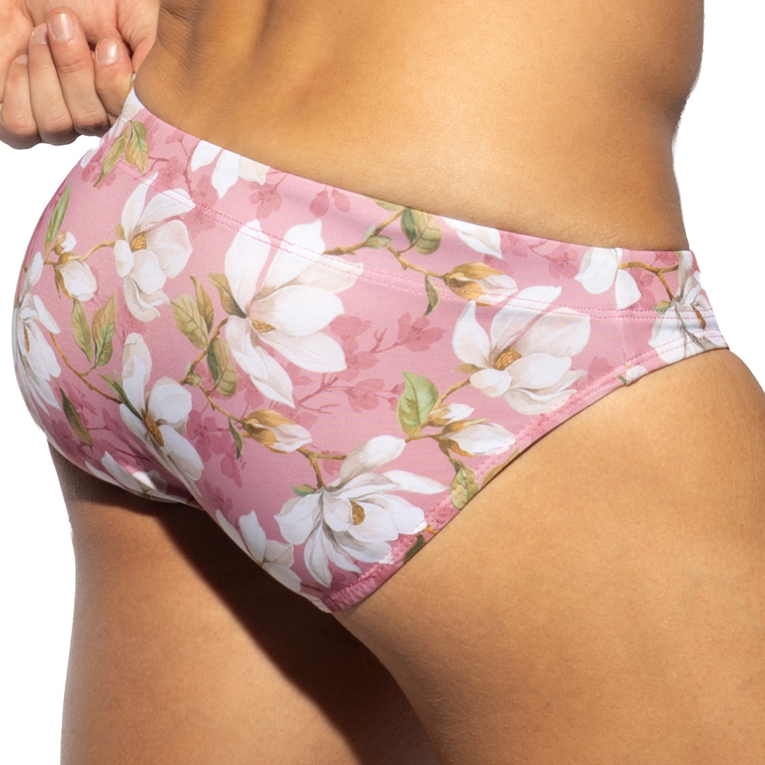 Olor a romanticismo. Parece Travesura. Exquisito patrón floral en toda la superficie, pero con un estilo Bikini Brief que crea problemas... ¡Los problemas florecerán! Tela súper cómoda, sublimariamente suave y elástica que será como una flor primaveral fresca para llevar. Fabricado con tecnología impresa: sin costuras ni costuras, lo que significa que no hay rasguños ni picor. Incluye la tecnología PackUp. Cinturilla elástica con dos bandas exteriores con cordón y cierres metálicos en los extremos, para un ajuste perfecto. Bolsillo delantero grande para todo el tallo y pétalos. Logo de la colección ES en rayas con cordón y etiqueta de silicona de colores en el frontal.