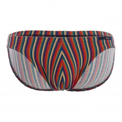 El calzoncillo micro PETERO es un calzoncillo para hombre de algodón modal elastano que presenta un bonito estampado colorido, con rayas verticales de inspiración vintage