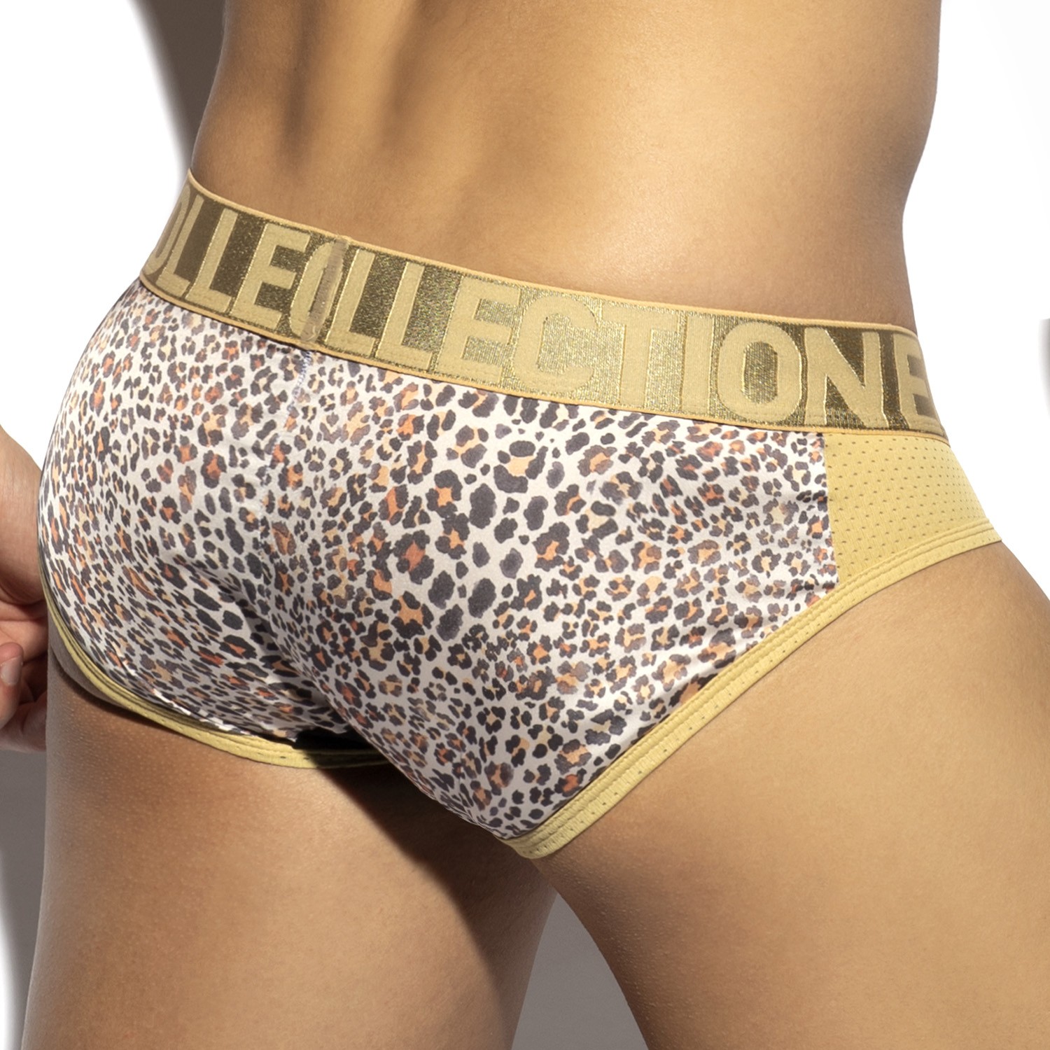 Echa un vistazo a este calzoncillo de microfibra de satén con estampado de leopardo. Tela Malla transpirable en los laterales. Bolsillo delantero push-up que garantiza que tengas un Excelente soporte y te hará lucir lo mejor posible. . Cintura elástica con el nombre de la marca. Cintura de tiro bajo. 90% Poliéster, 10% Spandex.