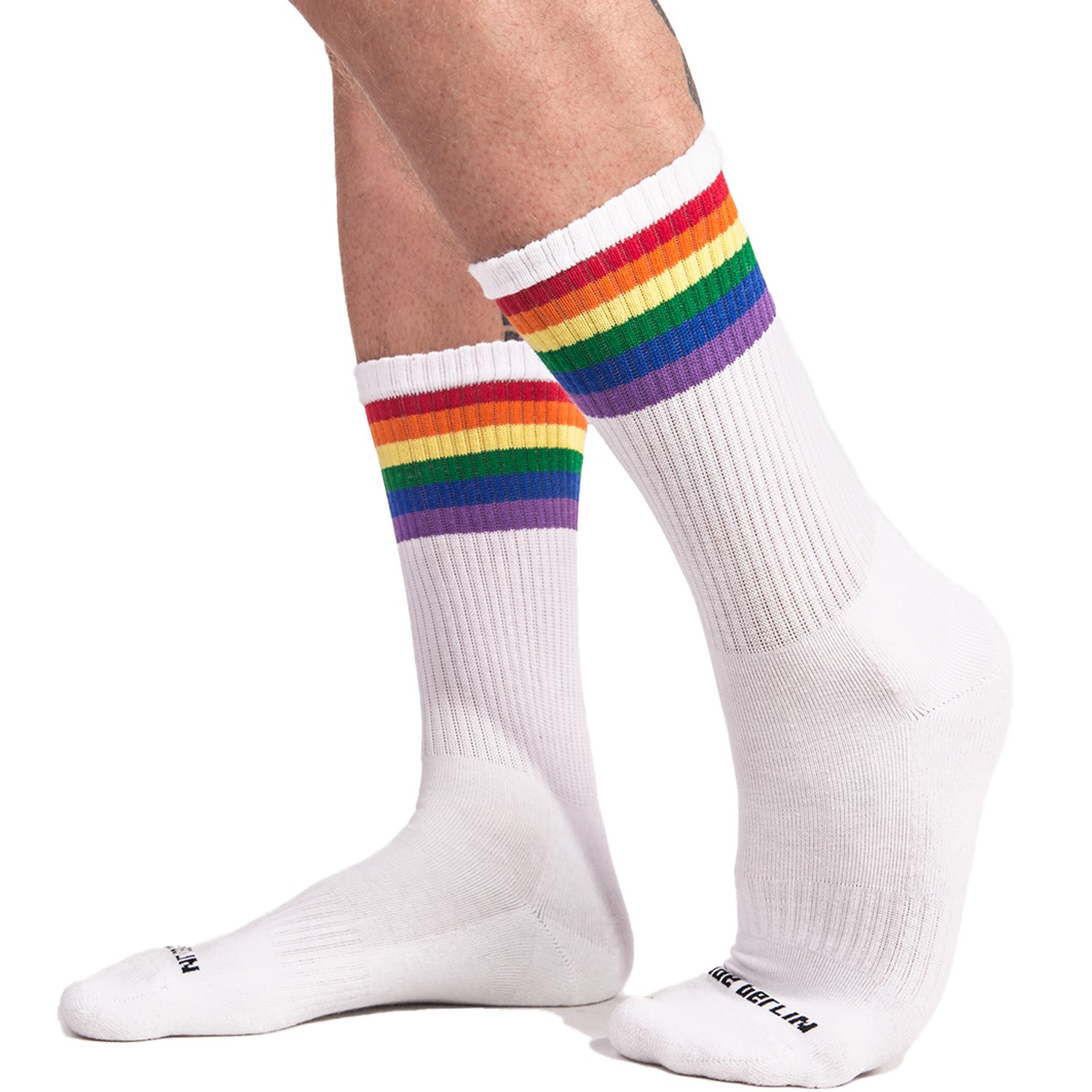 Don't hesitate any longer and add a touch of pride and style to your sportswear by choosing Barcode Pride Gym - white socks from Barcode Berlin. Do not compromise comfort and quality, opt for socks that will accompany you in all your sporting adventures.