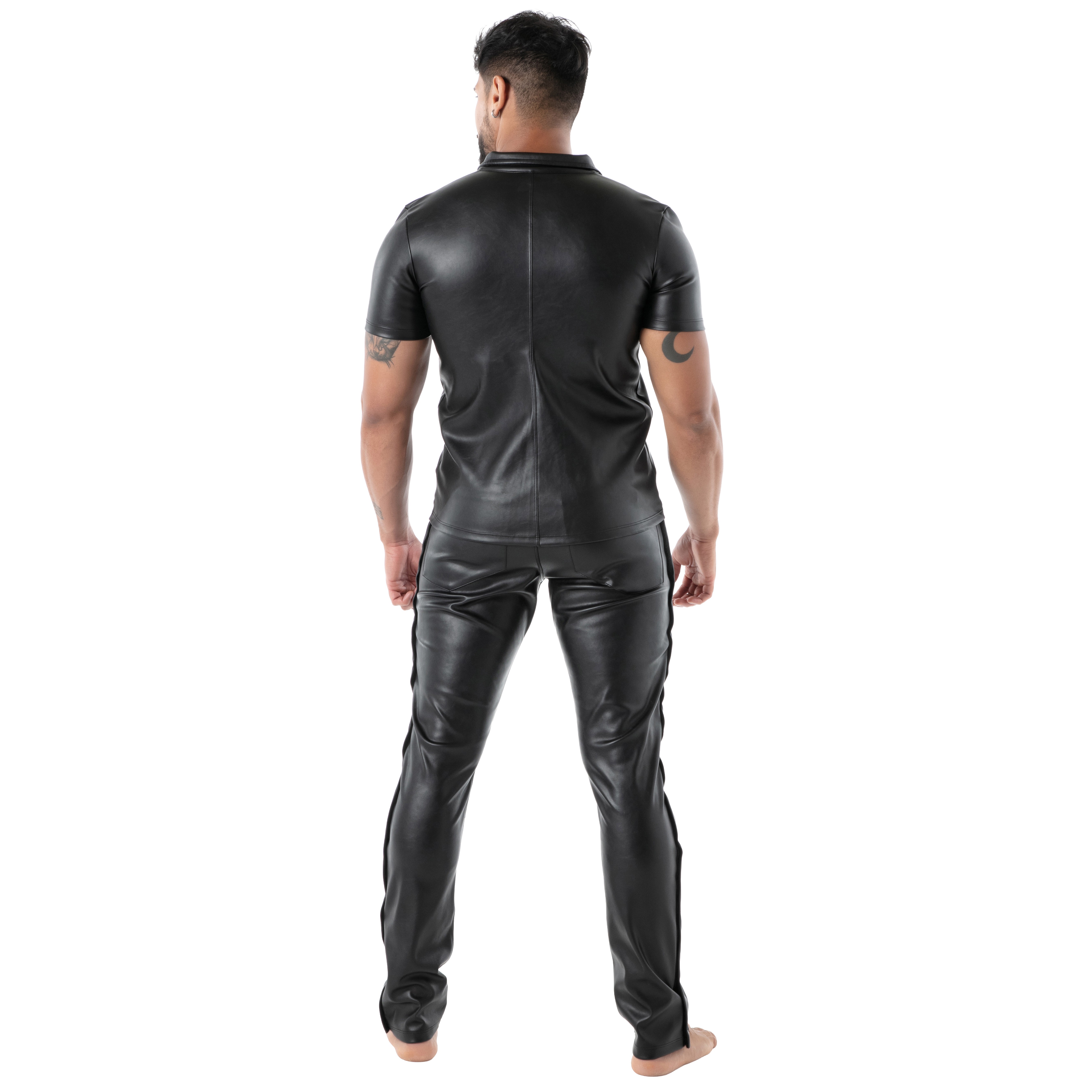 Make a statement with the kinky zipped cardigan by TOF Paris, an emblematic piece of the fetish chic wardrobe for men. Designed to enhance the male silhouette, this vegan leather cardigan combines assertive style, ethics and sensuality. Also discover our collections of men's leather T-shirts, jackets, polo shirts, and tank tops, men's leather underwear and men's leather shorts to complete your look.