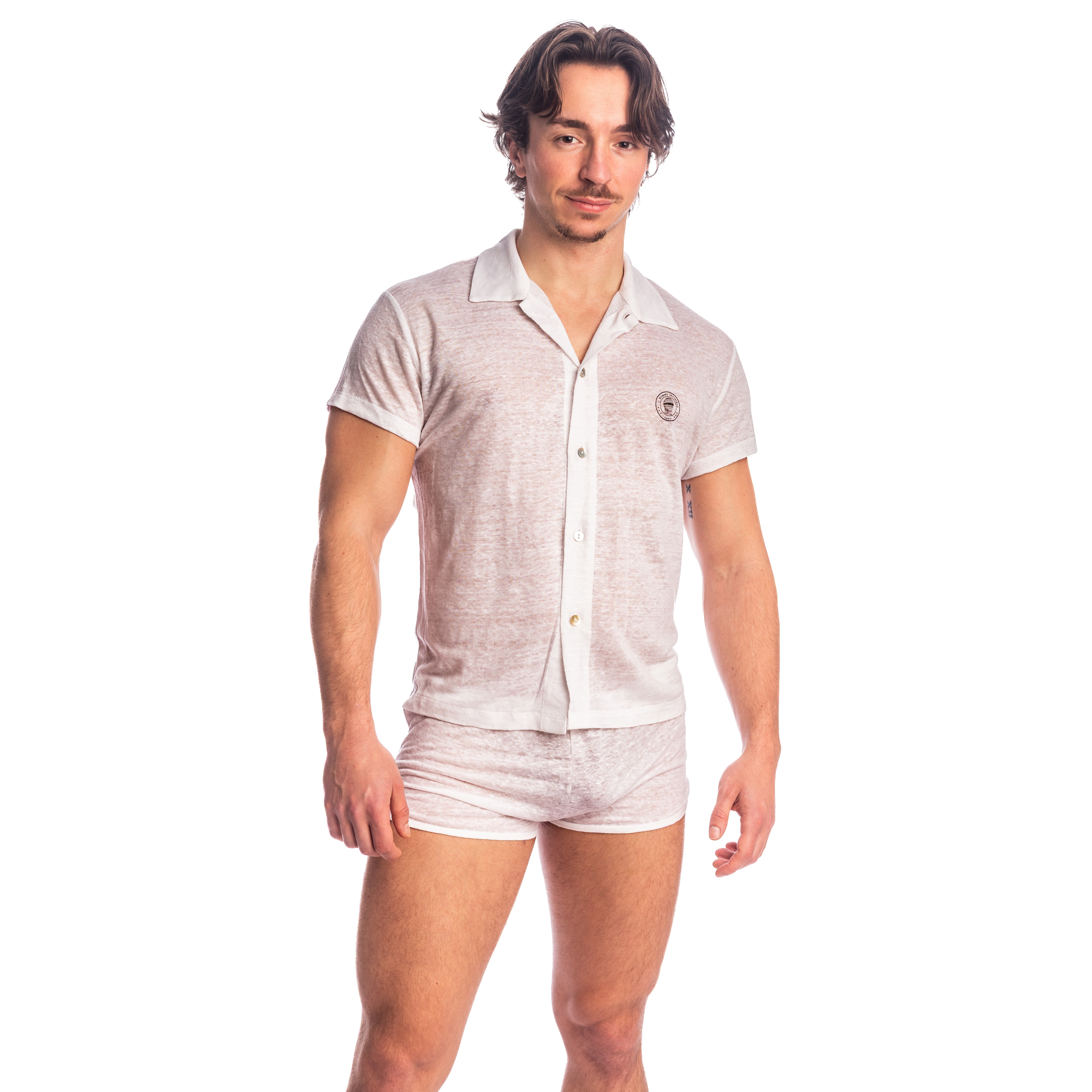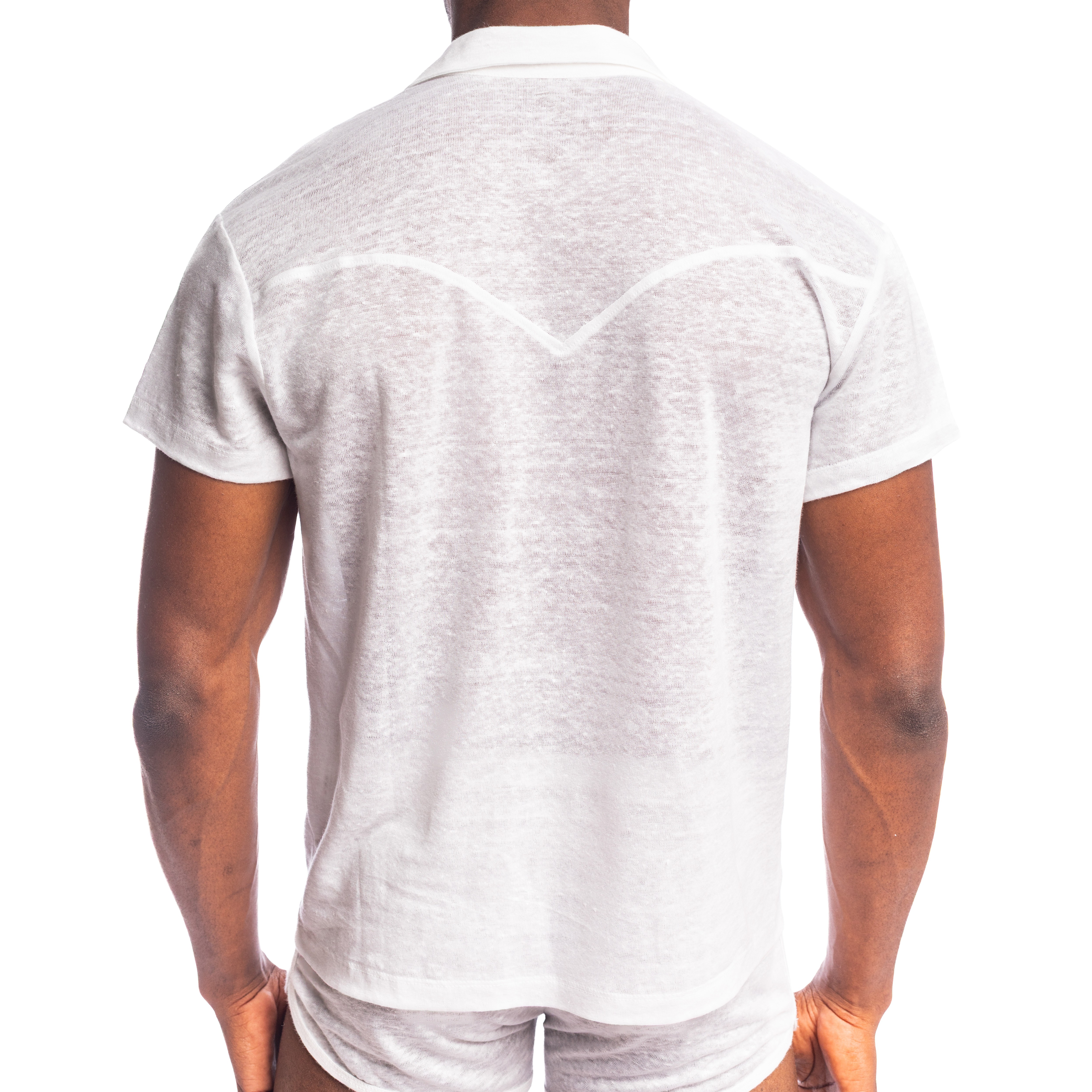 Its open Cuban collar brings a subtly revisited vintage look, between Riviera and minimalist modernity. Worn alone, slightly buttoned, or open over a t-shirt, this men's white linen shirt offers a relaxed and structured silhouette at the same time.