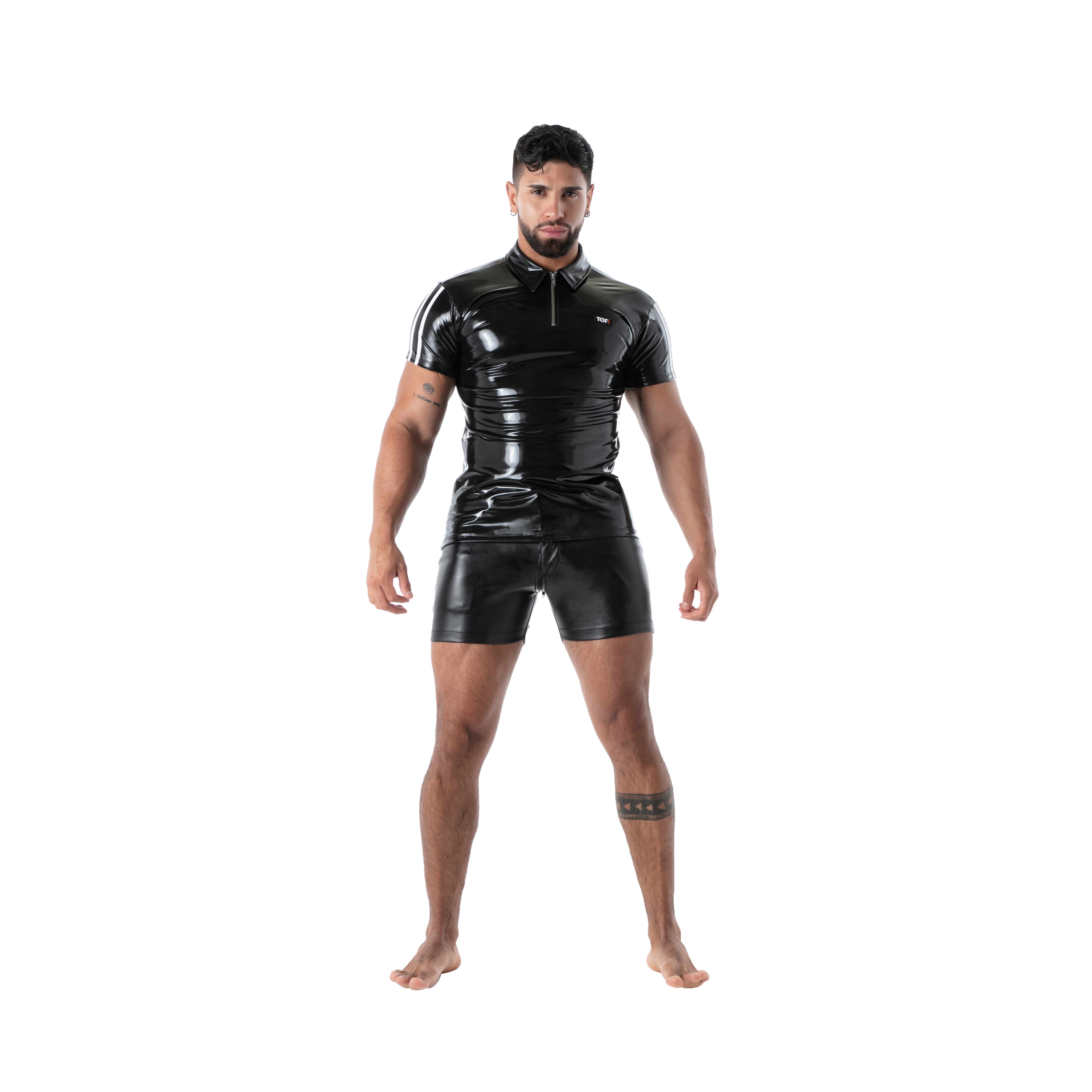 - Provocative and sophisticated: This black latex polo shirt hugs every curve, revealing a silhouette that is both elegant and bold. Its shiny appearance and slim fit are a real eye-catcher.