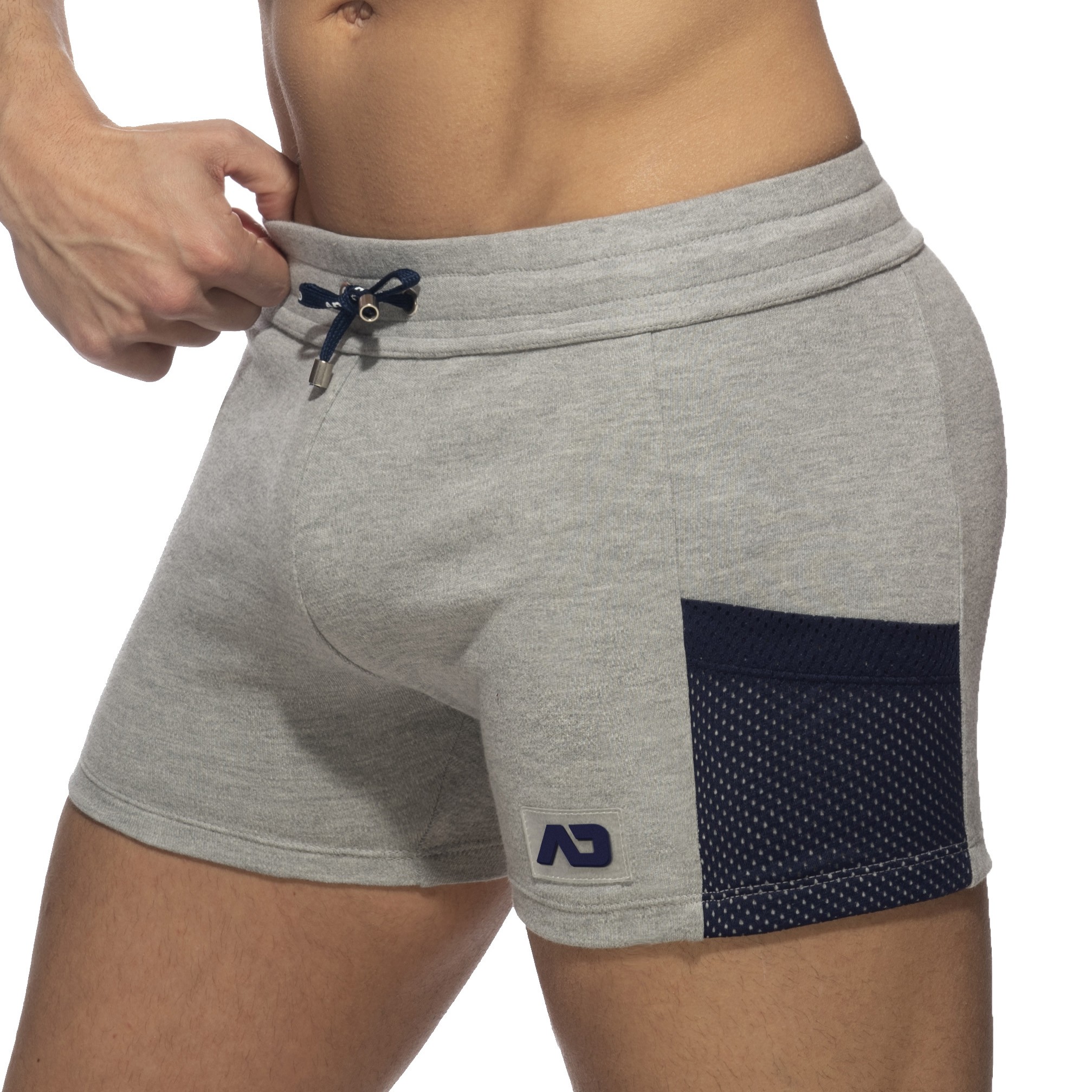 It has a mesh fabric band on the right side, and a mesh pocket on the left side.