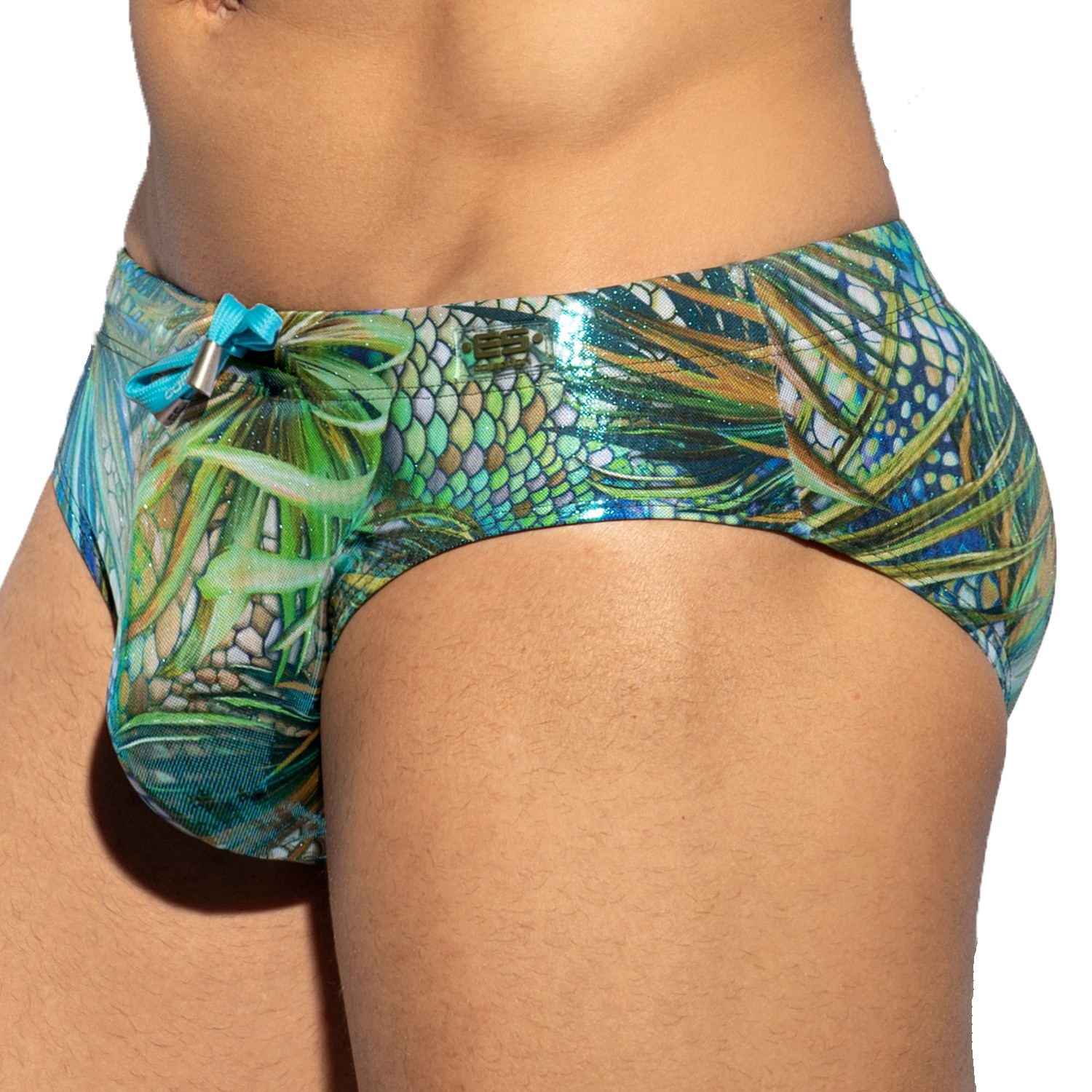 Swim briefs with a shiny and luxurious polyester & elastane fabric.