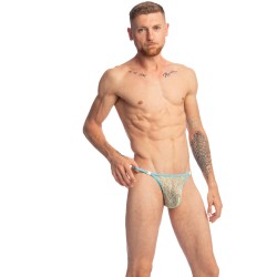 Made in an Italian material, this lace men's thong evokes for We have the delicacy of its aniseed colour. Perfect for making your exquisite wardrobe, lace will draw on your body a pattern all in waves that will enhance your curves.