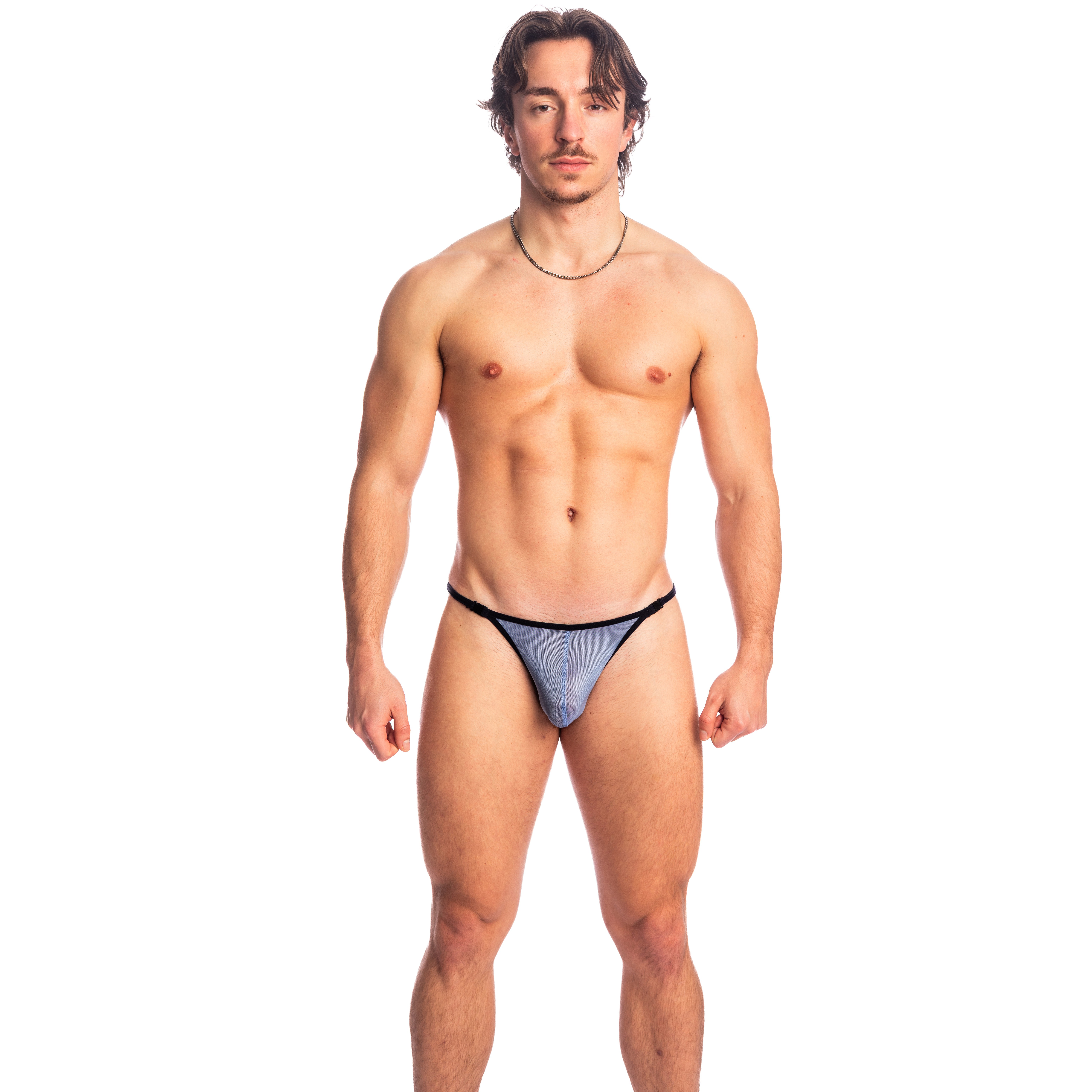 The Azzuro Striptease Thong embodies the summer elegance of transparent men's lingerie according to L'Homme Invisible. Designed in an ultra-fine knit with a slightly shiny finish, this men's thong hugs the body like a second skin and subtly lets you guess the natural lines.