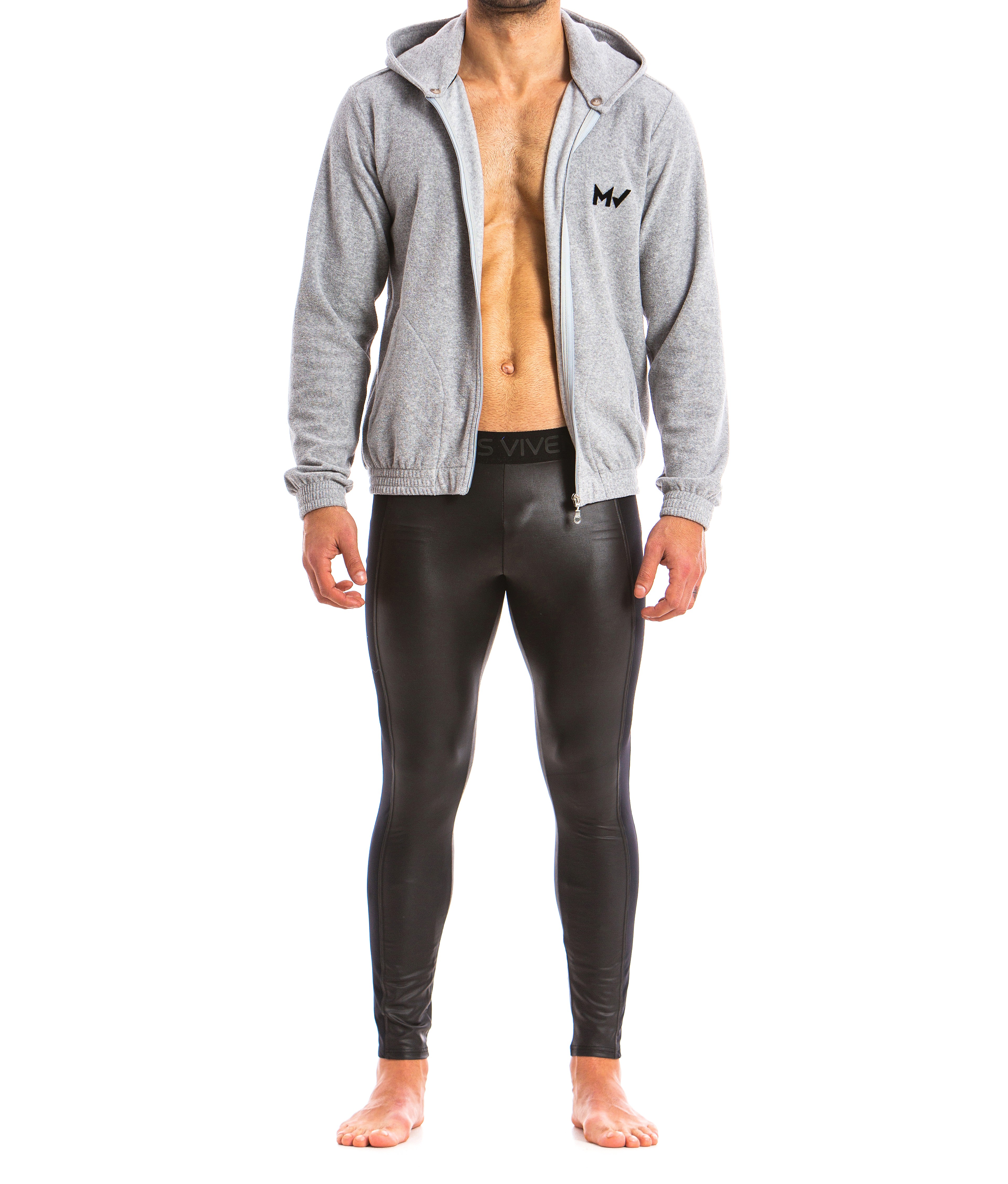 It has a zipper on the front and features the new MV logo printed on the left front.