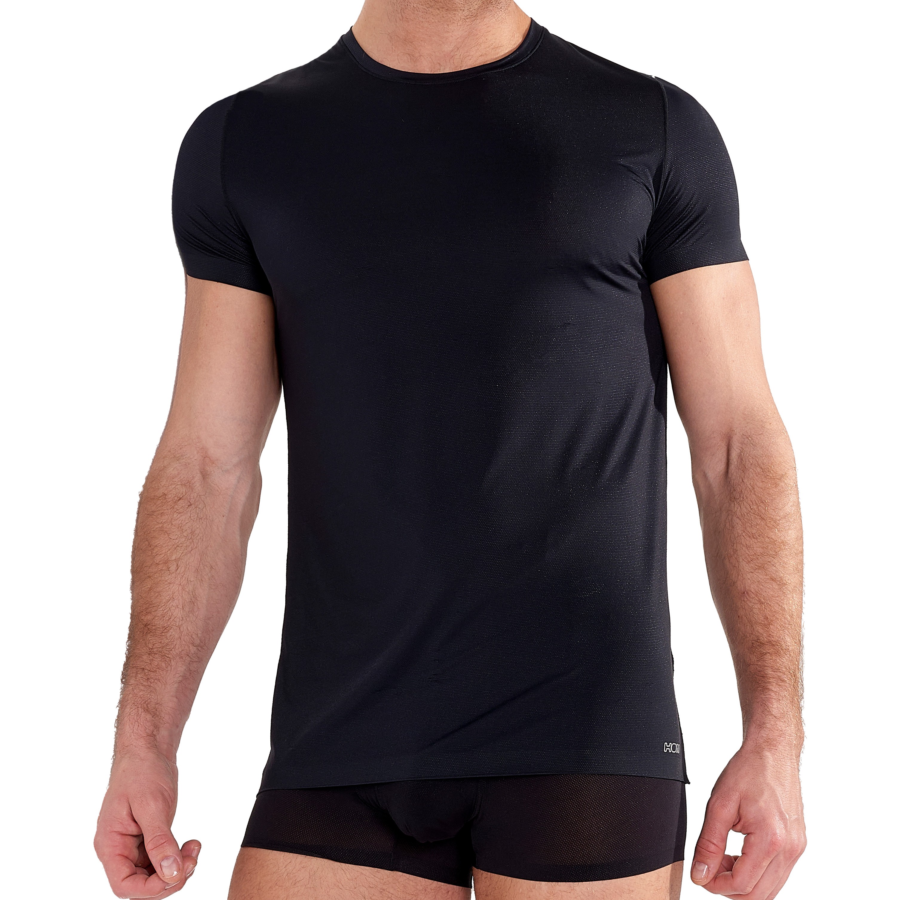 Le T-shirt col rond H-Fresh HOM noir est un incontournable de votre garde-robe.