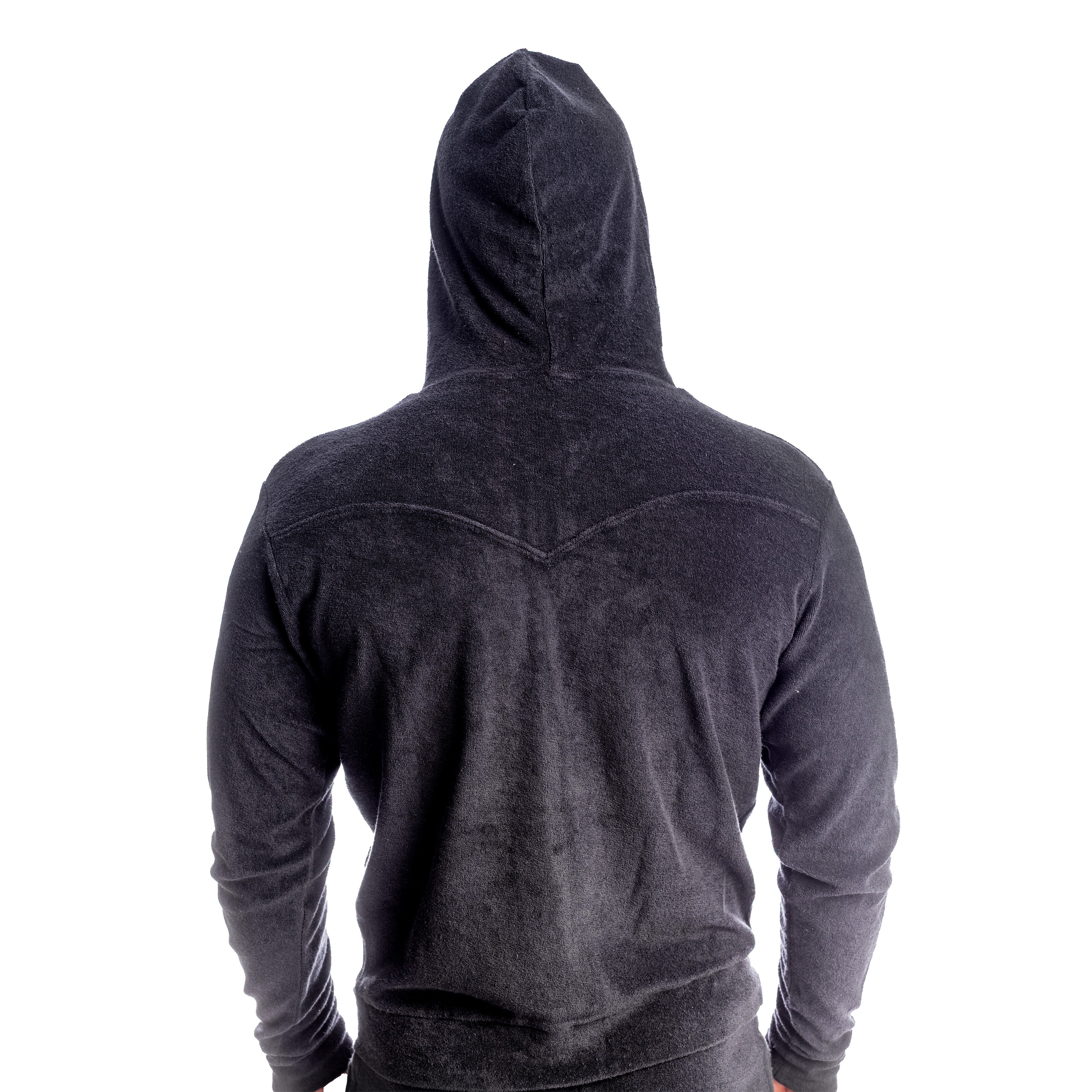 La silhouette ajustée valorise épaules et torse, la fermeture zippée double curseur module le style (ouvert décontracté, fermé athlétique). Capuche doublée et poches kangourou complètent l’ensemble.