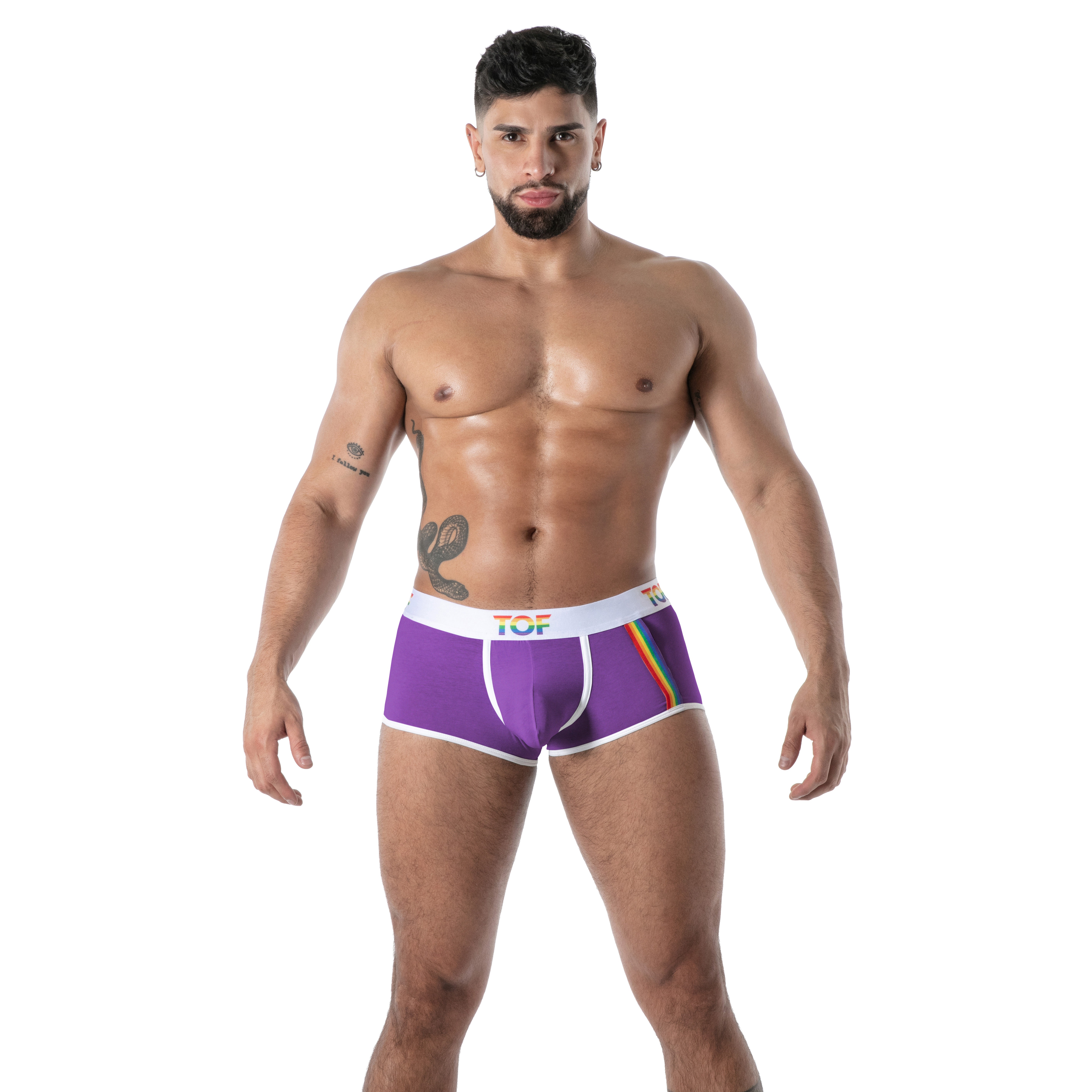 Esplora l'audace universo di TOF Paris con i boxer viola Pride Joyful Boxer, un capo iconico in linea con le nostre collezioni di mutande maschile, slip e mini briefs, perizoma con e senza cordino da uomo o i nostri eleganti body da uomo. Questo modello è rivolto agli uomini che cercano una dichiarazione di stile e una combinazione perfetta di sensualità, comfort e creatività.