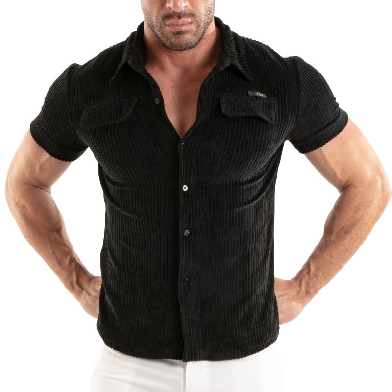 Abbraccia l'eleganza del velluto a coste con la camicia in velluto da uomo tof paris. Perfetta per uno stile esclusivo, questa camicia a maniche corte combina comfort e moda. Disponibile in nero, blu navy, sabbia e cammello, può essere indossato sia con pantaloni da uomo che con pantaloncini da uomo sexy.