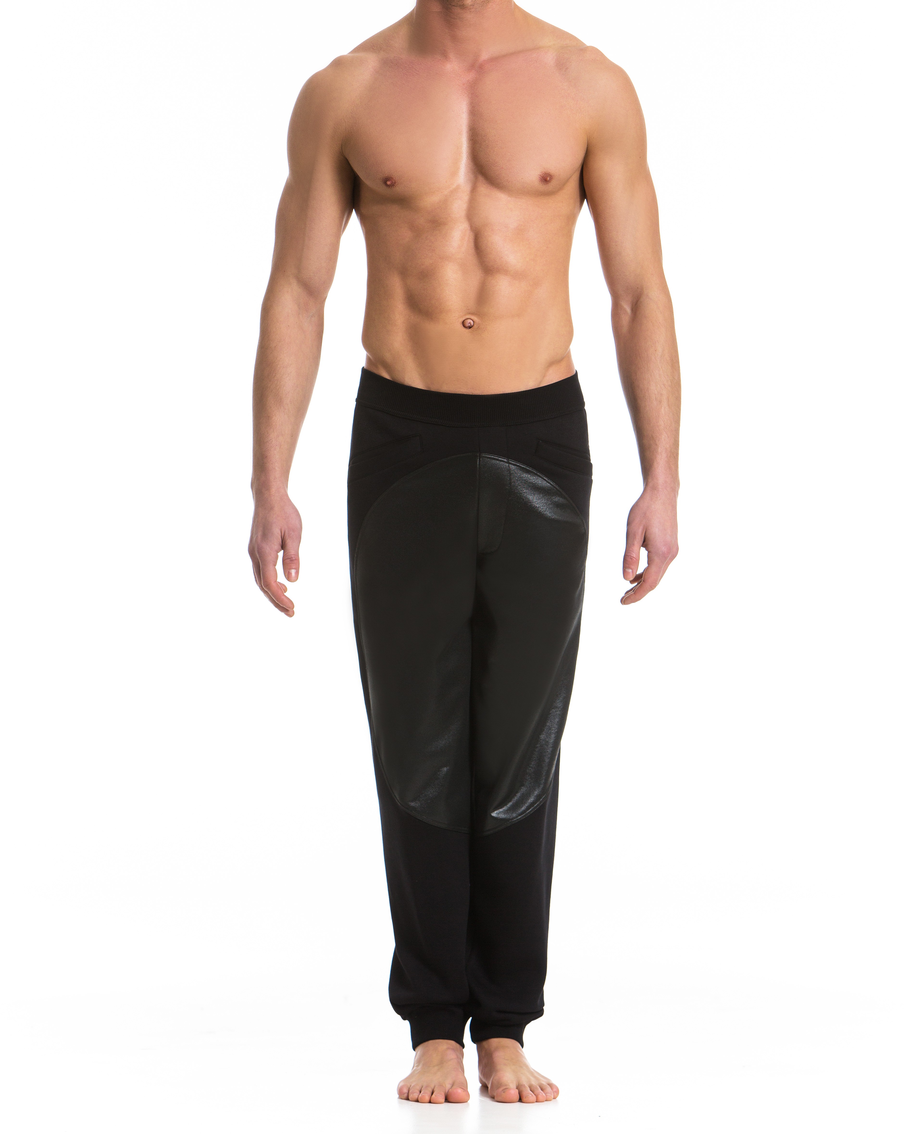 Un po 'casual, questi pantaloni sono una combinazione di due materiali. Una base nera opaca e un cerchio in pelle simile a un raso. Questa combinazione gli conferisce un tocco di eleganza e molta originalità.