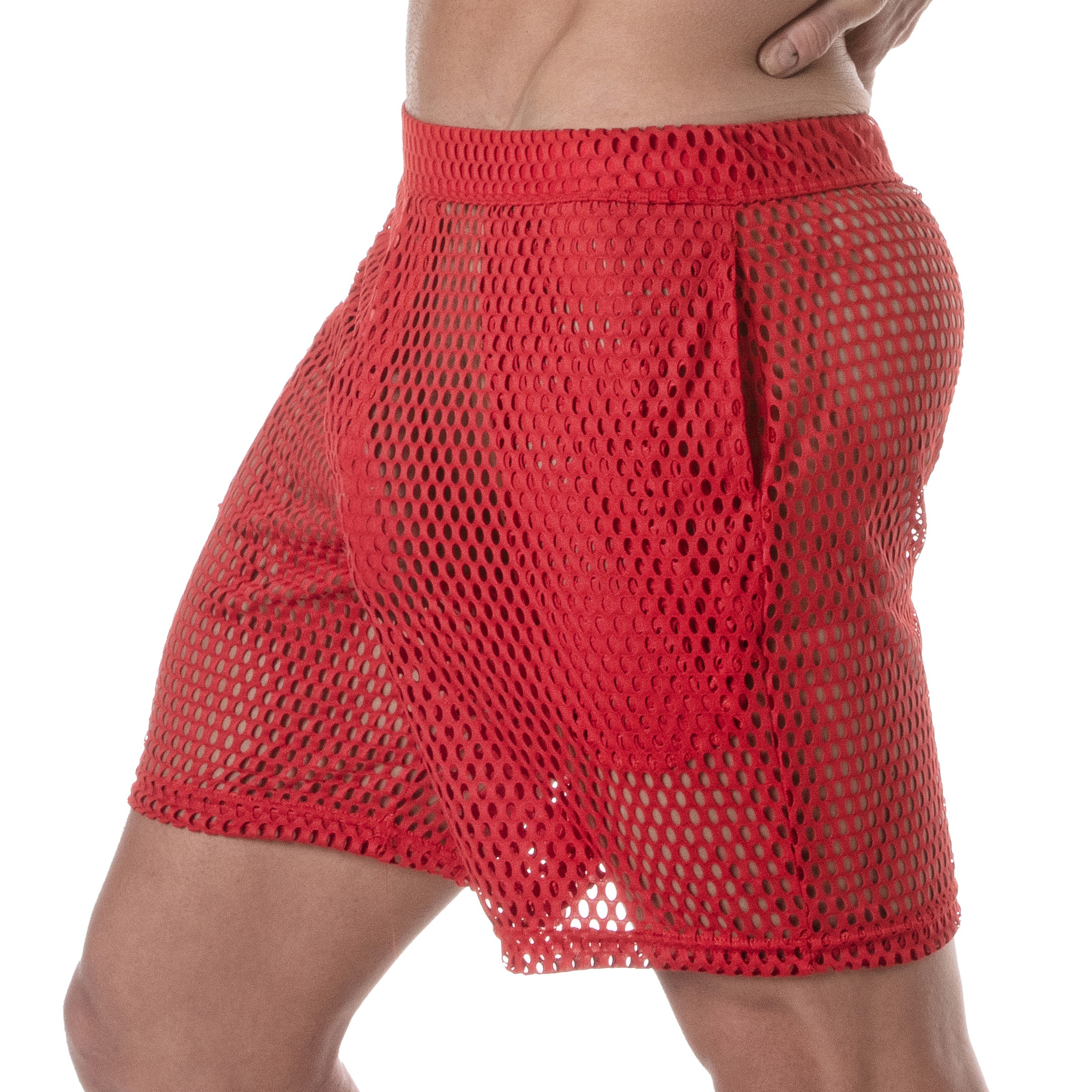 Questi pantaloncini lunghi a rete incarnano sia l'audacia che lo stile distintivo. Con le sue due tasche profonde e il design non svasato, Foderato, offre una miscela unica di funzionalità ed estetica. Le Il tessuto traforato e la vita bassa aggiungono un tocco di sensualità a questo veste.