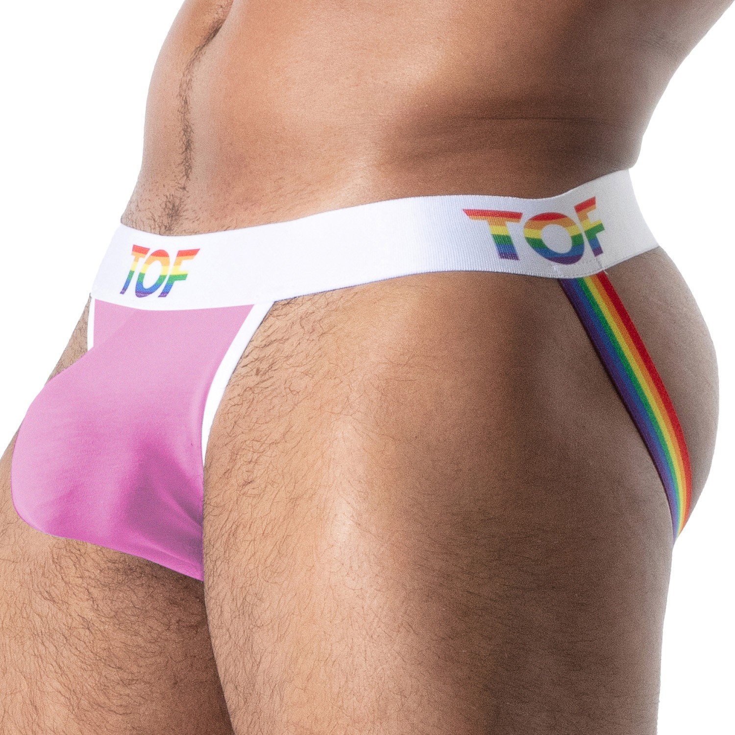 Créé pour les amateurs de jockstrap homme, le pride joyful offre un rendu visuel irrésistible grâce à sa conception ergonomique et à sa bande élastique rainbow, spécialement étudiée pour remonter les fesses et mettre en valeur la courbure naturelle du corps. La ceinture arc-en-ciel, rehaussée du logo TOF imprimé, apporte une signature forte, symbolisant la liberté, la fierté et un style résolument assumé.