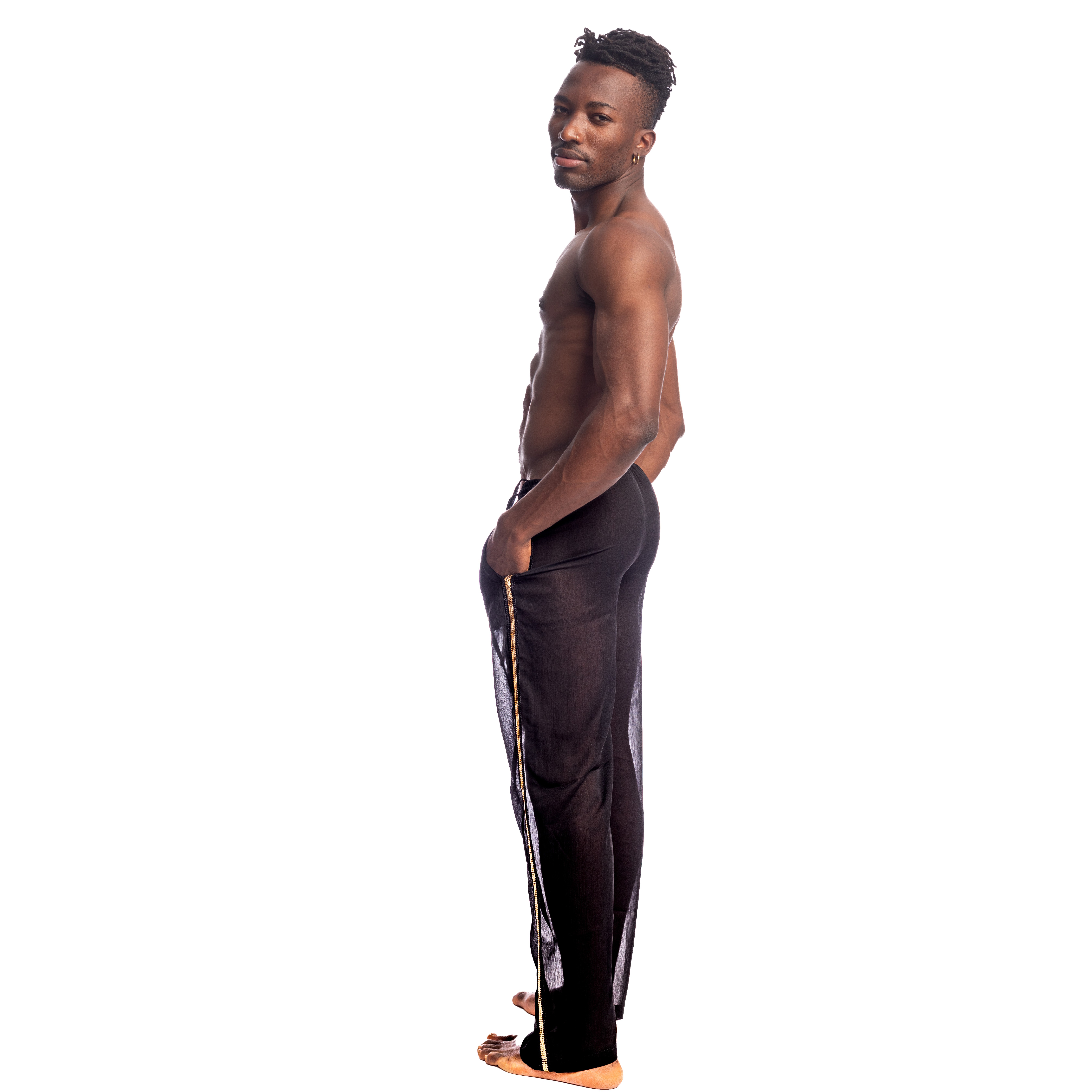 Découvrez le pantalon Stellaro à cordon coulissant de L'Homme Invisible, un incontournable de la catégorie Pantalon qui redéfinit la sensualité masculine. Avec sa confection en mousseline noire transparente, ce modèle incarne le parfait équilibre entre élégance et audace. Chaque mouvement se transforme en une danse délicate, grâce à son voile fluide qui caresse la peau, vous permettant de vous sentir à la fois libre et irrésistible.