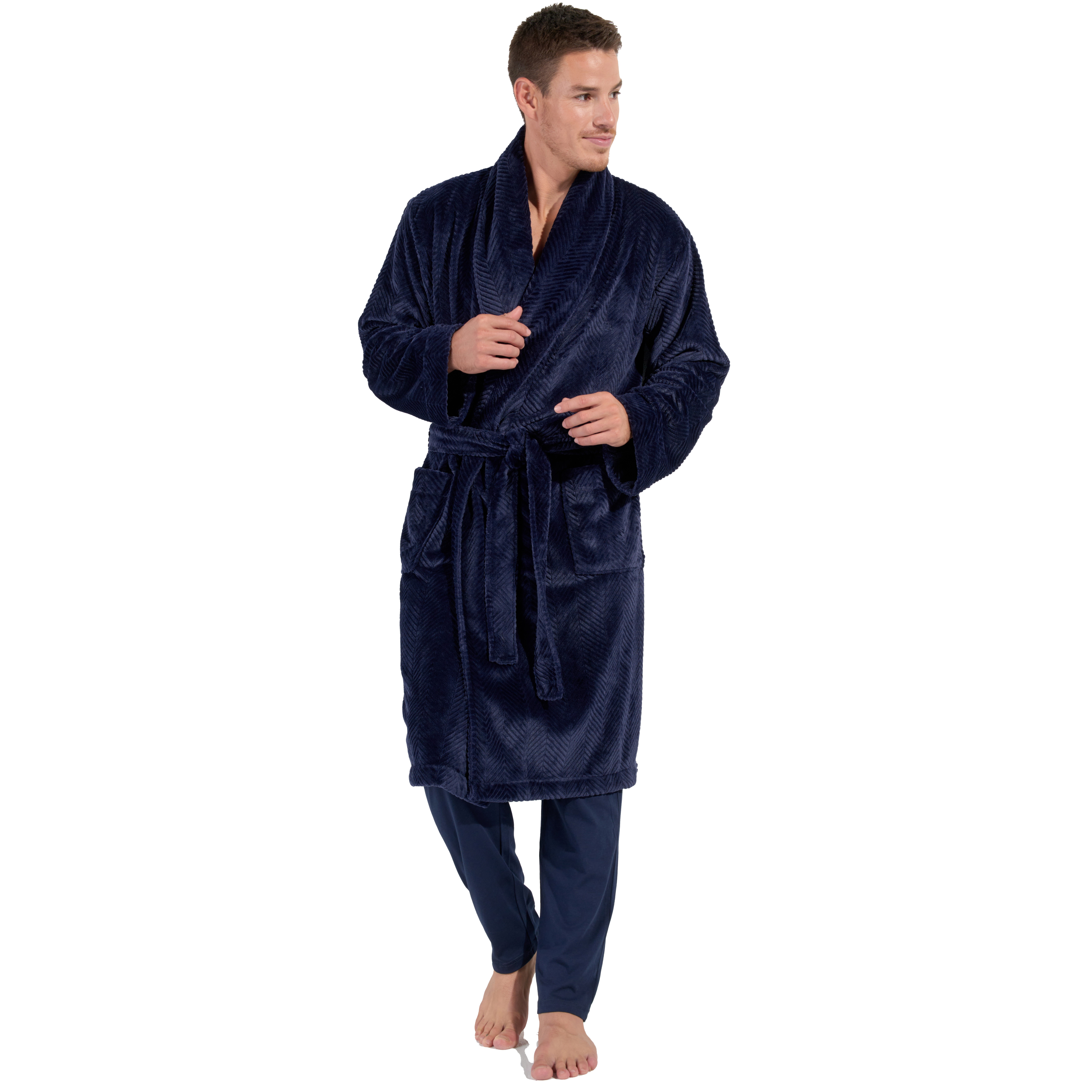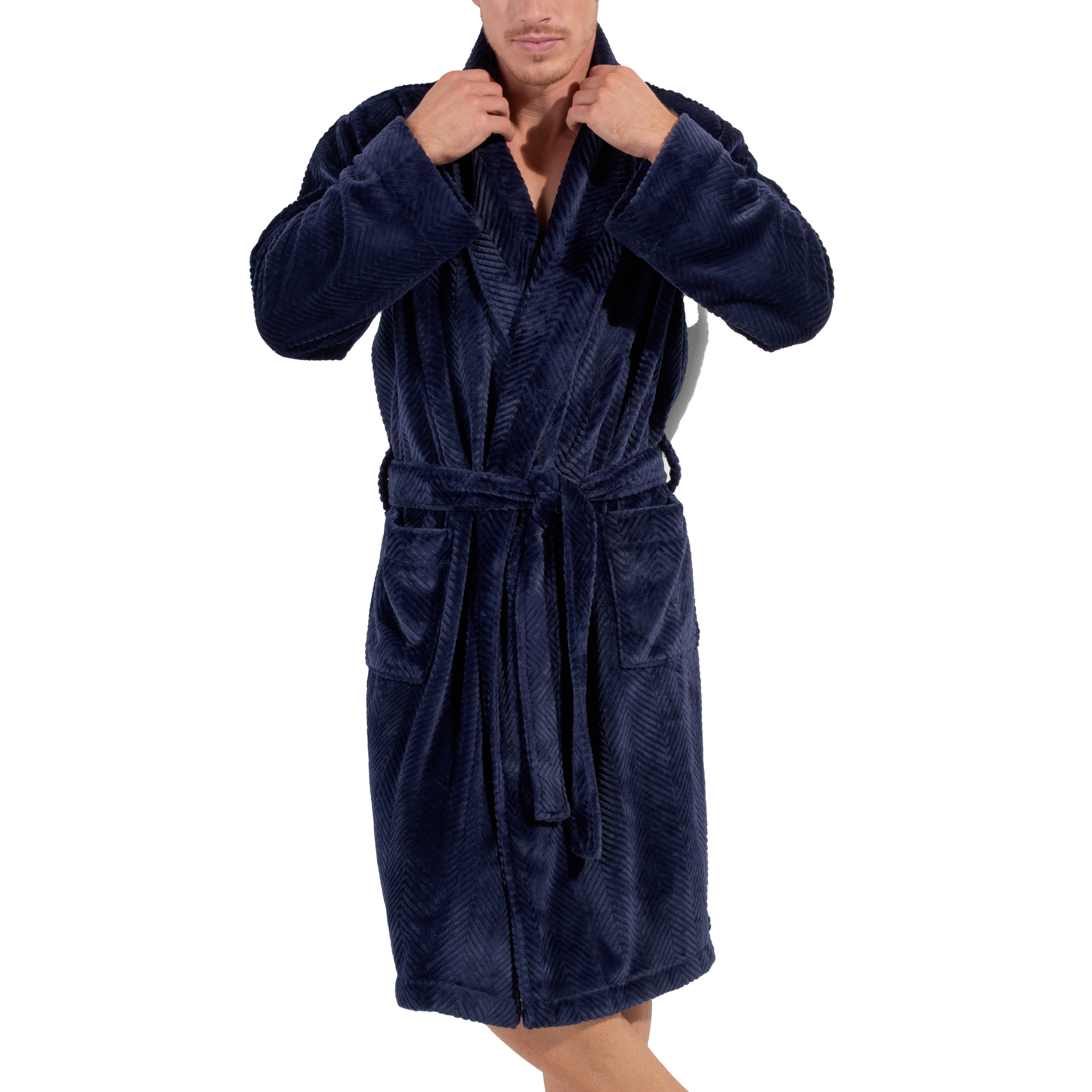 La robe de chambre HOM Everest est un kimono long pour hommes en matière polaire, orné d'un motif chevron élégant. Confortable et douce, cette robe de chambre est parfaite pour se détendre à la maison.