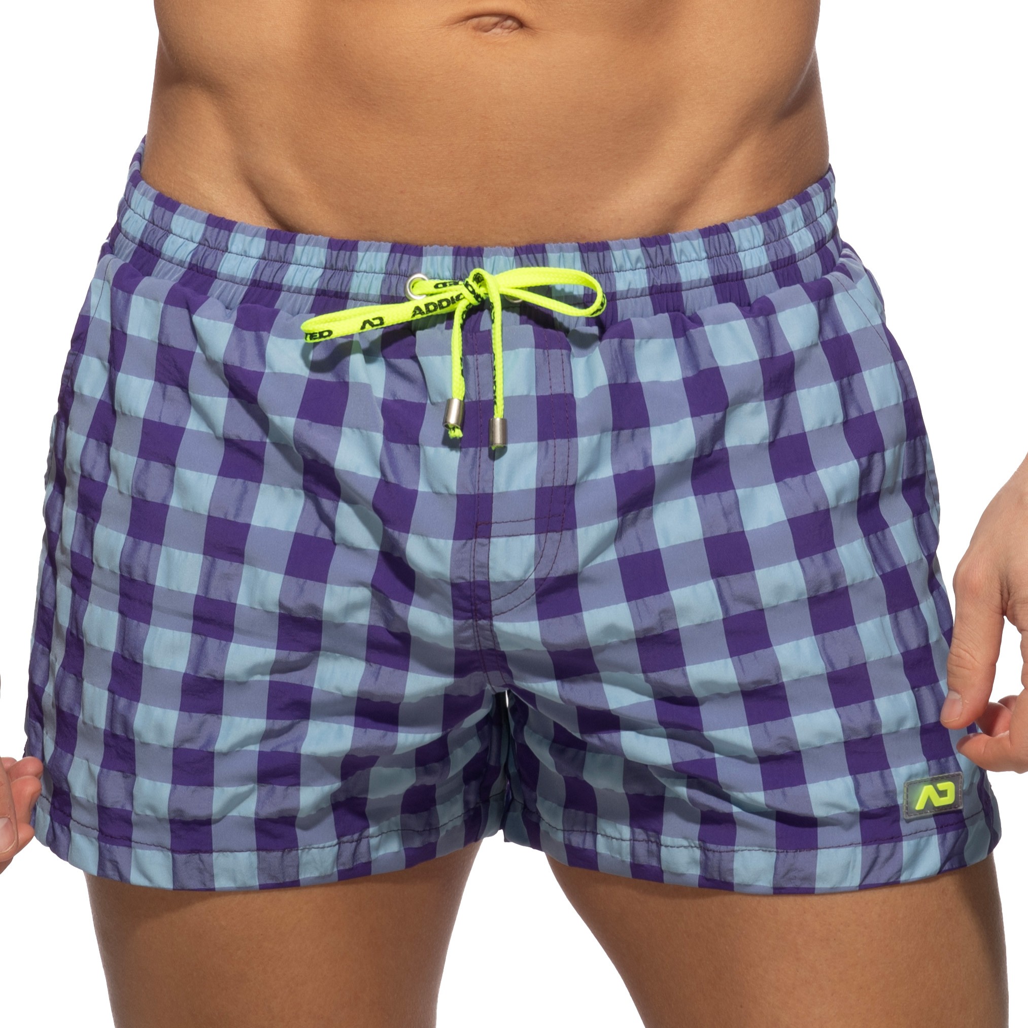Laissez-vous séduire par le style unique et avant-gardiste de la marque ADDICTED avec ces shorts de bain Flashy Squares violet.