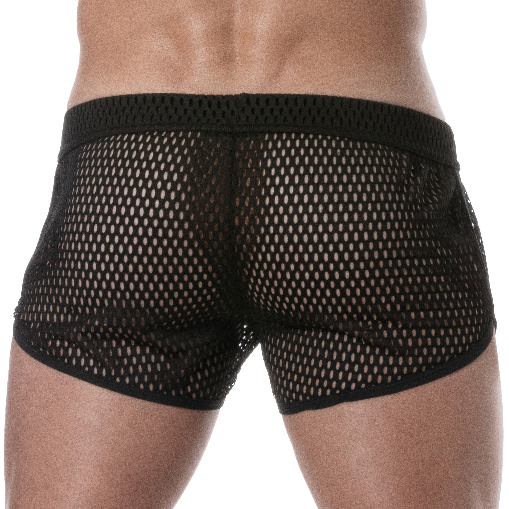 Découvrez le Mini Short Tof Paris See Through, un short sexy noir en mesh transparent pour un look ultra tendance. Sa coupe taille basse rétro vous garantit un style audacieux et sensuel. Ce short sans doublure ni slip intérieur est idéal pour dévoiler vos courbes avec subtilité.