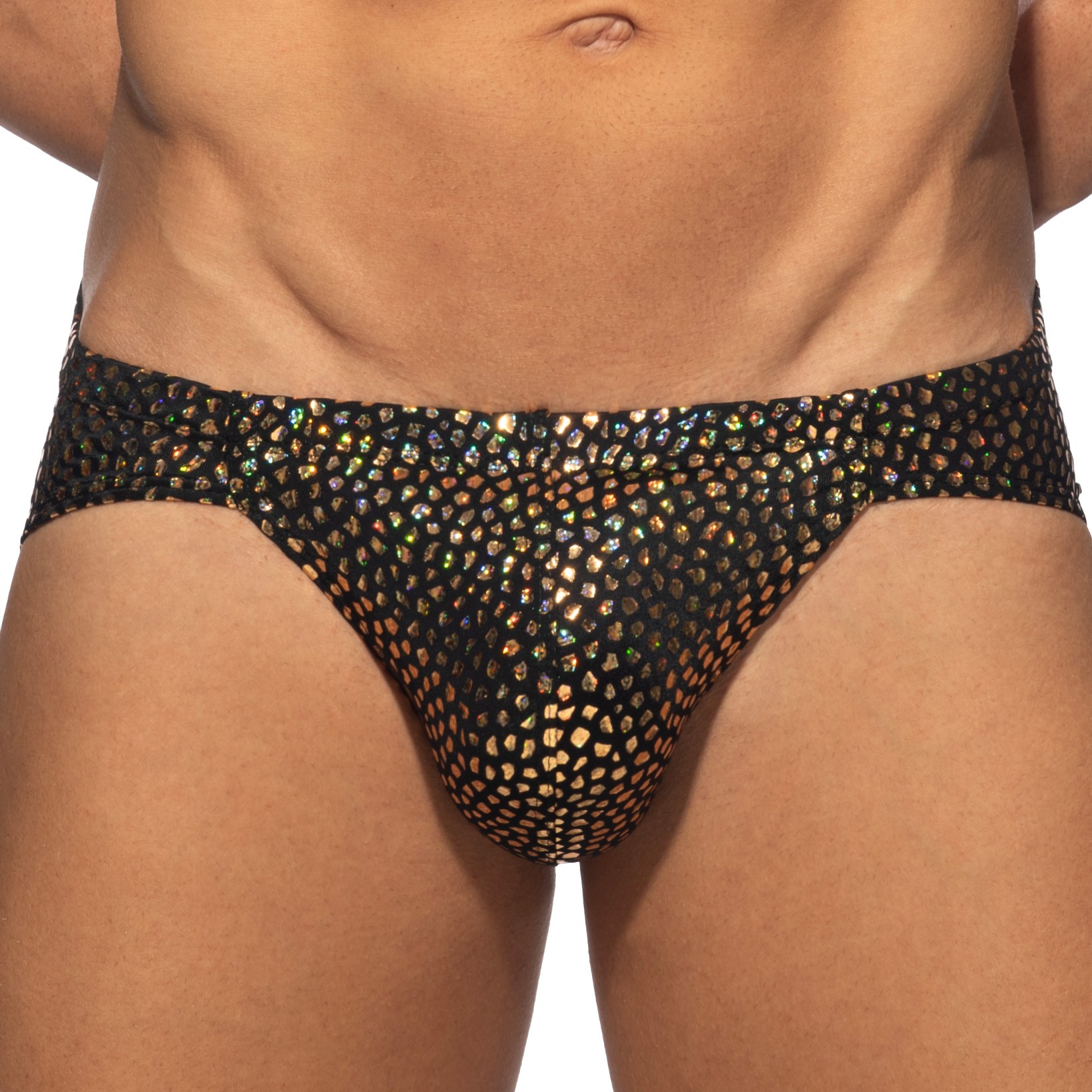 Conçu pour ceux qui aiment se démarquer, le Bikini Gold Stones Edition Limitée arbore un effet laminé scintillant et doré qui capte et reflète la lumière sous tous les angles, faisant de vous le centre de toutes les attentions. Que vous soyez à une soirée animée ou simplement en quête de confort au quotidien, ce slip est l'allié idéal. Son matériau légèrement extensible assure un ajustement parfait, tandis que l'espace de poche avant, généreusement dimensionné, vous offre à la fois confort et praticité, idéal pour mettre en valeur votre silhouette.
