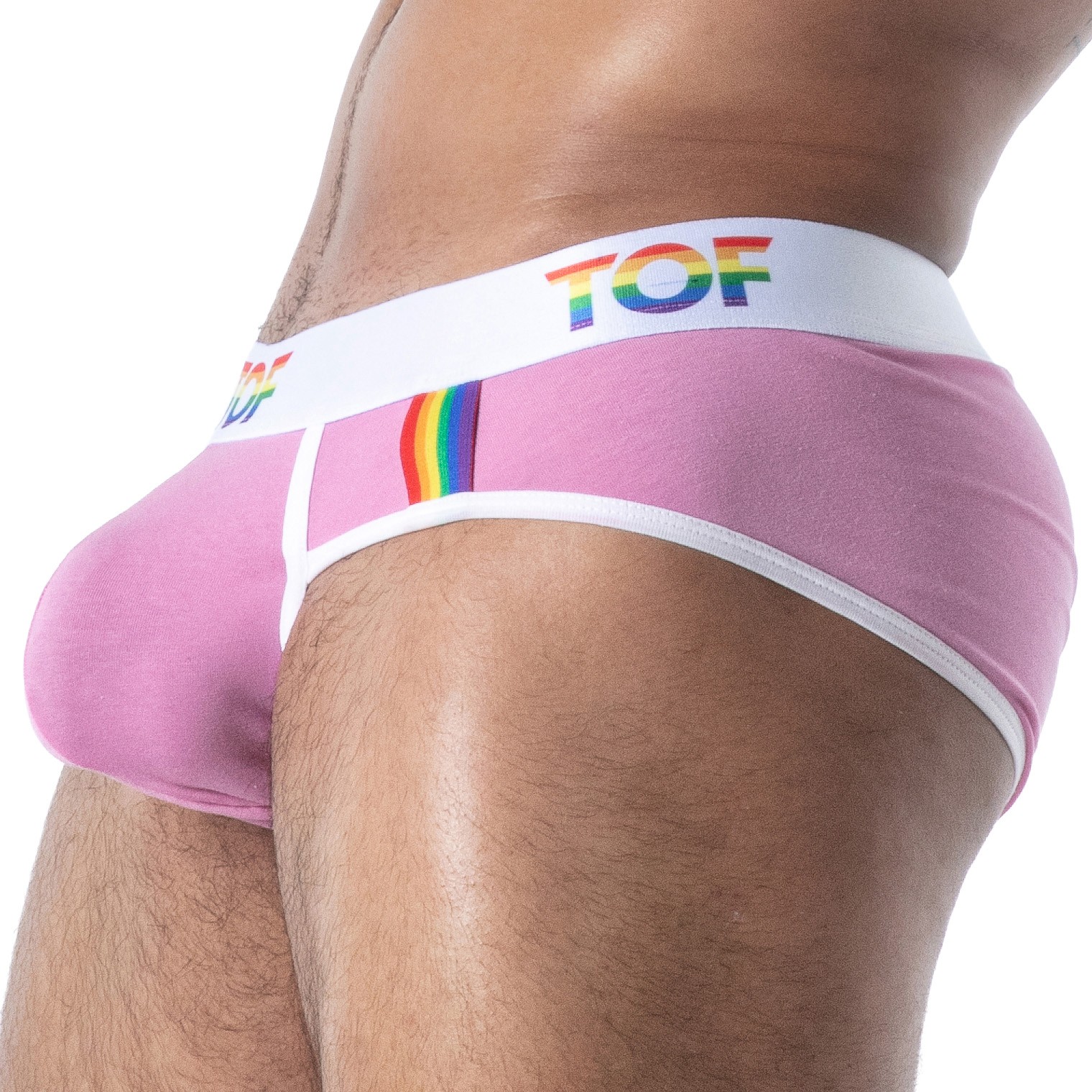 Sur le côté, la bande rainbow offre une signature visuelle forte, symbole de fierté et d’ouverture, tandis que la ceinture élastique ornée du logo TOF vient compléter ce mélange réussi entre style audacieux, confort et allure contemporaine.
