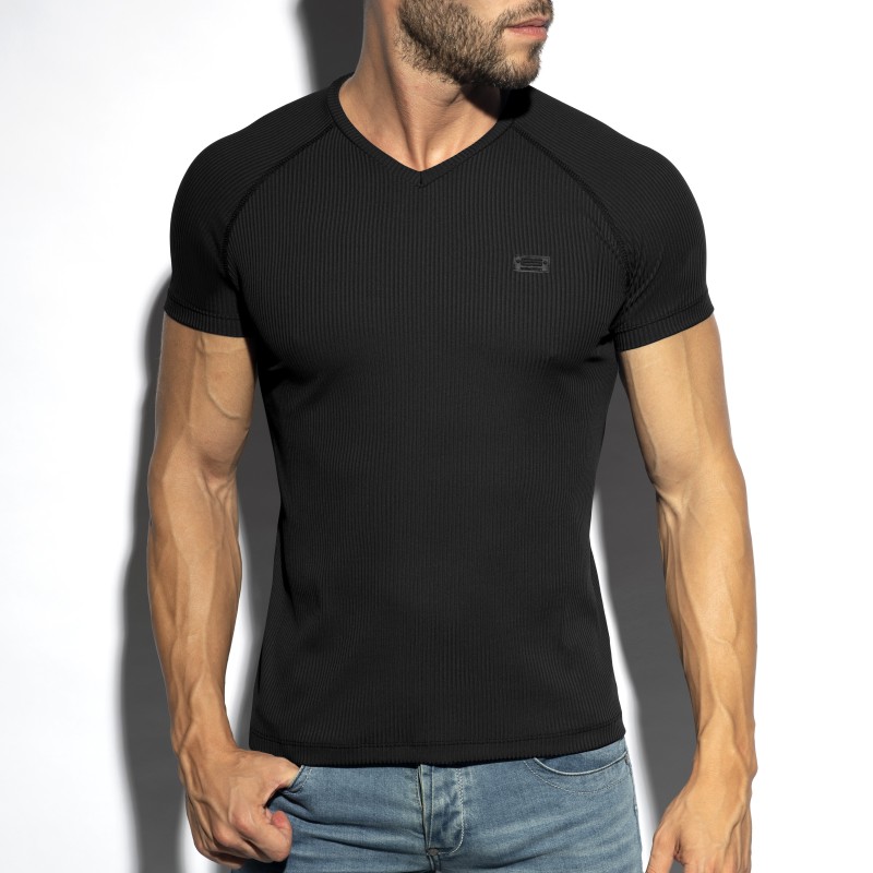Découvrez notre T-shirt V-Neck recycled rib noir de la marque ES Collection, un produit parfaitement adapté à vos besoins en matière de mode et respectueux de l'environnement.