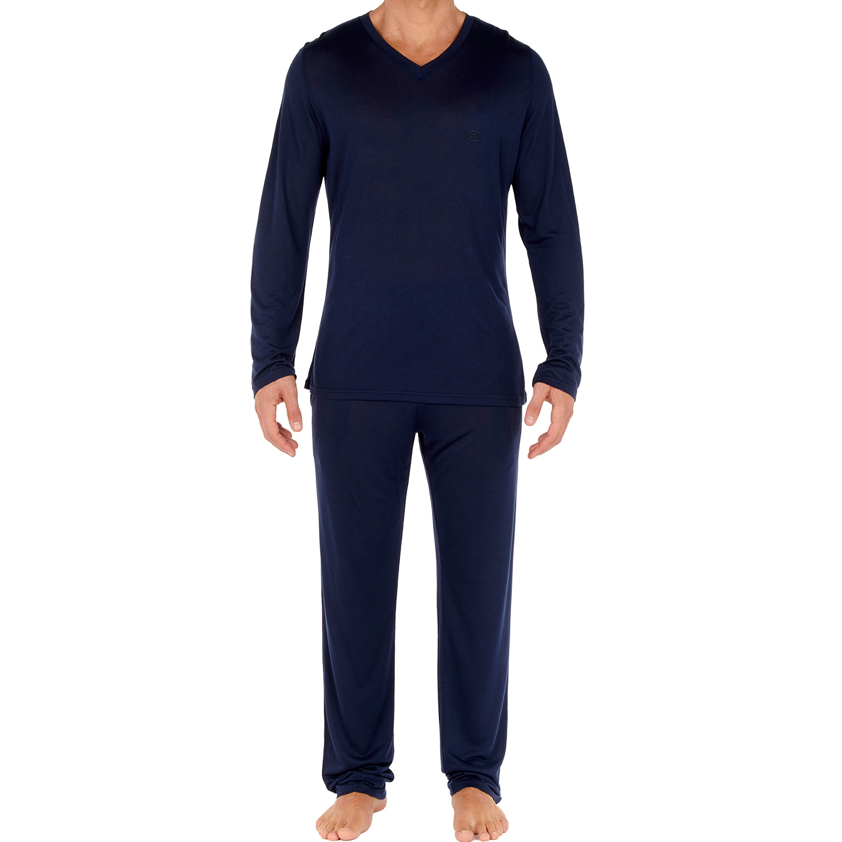 Ce t-shirt col V pour homme se porte aussi bien tel quel que sous un vêtement. Idéal pour se relaxer à la maison, il est doté de manches longues et d'une coupe droite ajustée pour une silhouette impeccable. Le modal, une fibre naturelle, confère à ce t-shirt des propriétés absorbantes optimales, résistant également aux rétrécissements et aux frottements.